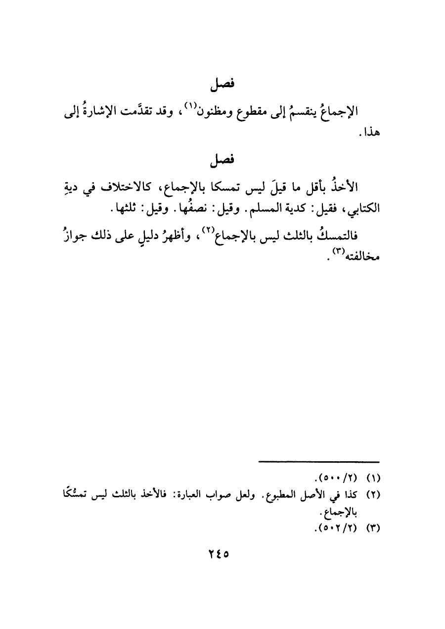 (¬٢) كذا في الأصل المطبوع، ولعل صواب العبارة: فالأخذ بالثلث ليس تمسُّكًا بالإجماع.