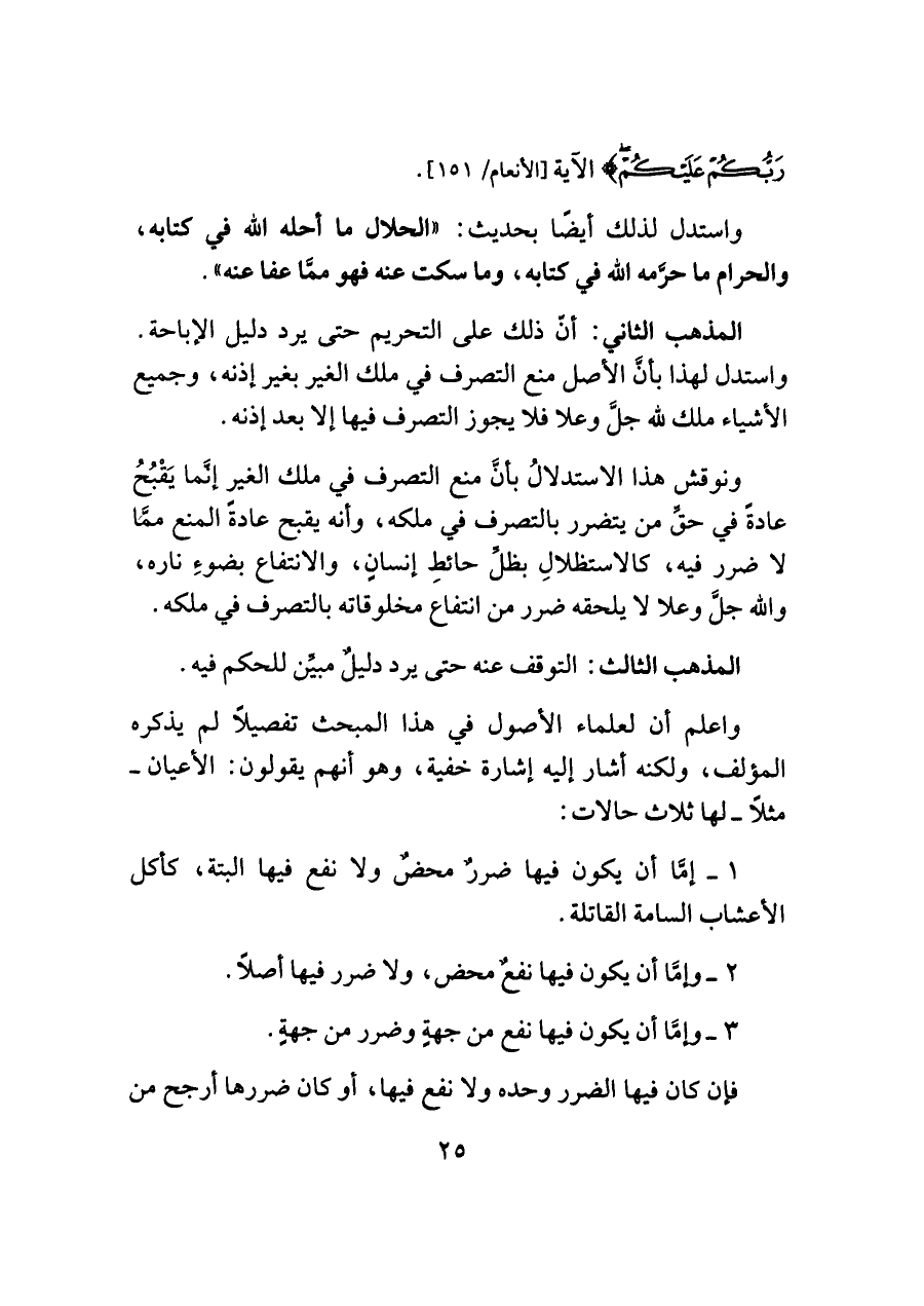 واعلم أن لعلماء الأصول في هذا المبحث تفصيلًا لم يذكره المؤلف، ولكنه أشار إليه إشارة خفية، وهو أنهم يقولون: الأعيان -مثلًا- لها ثلاث حالات: