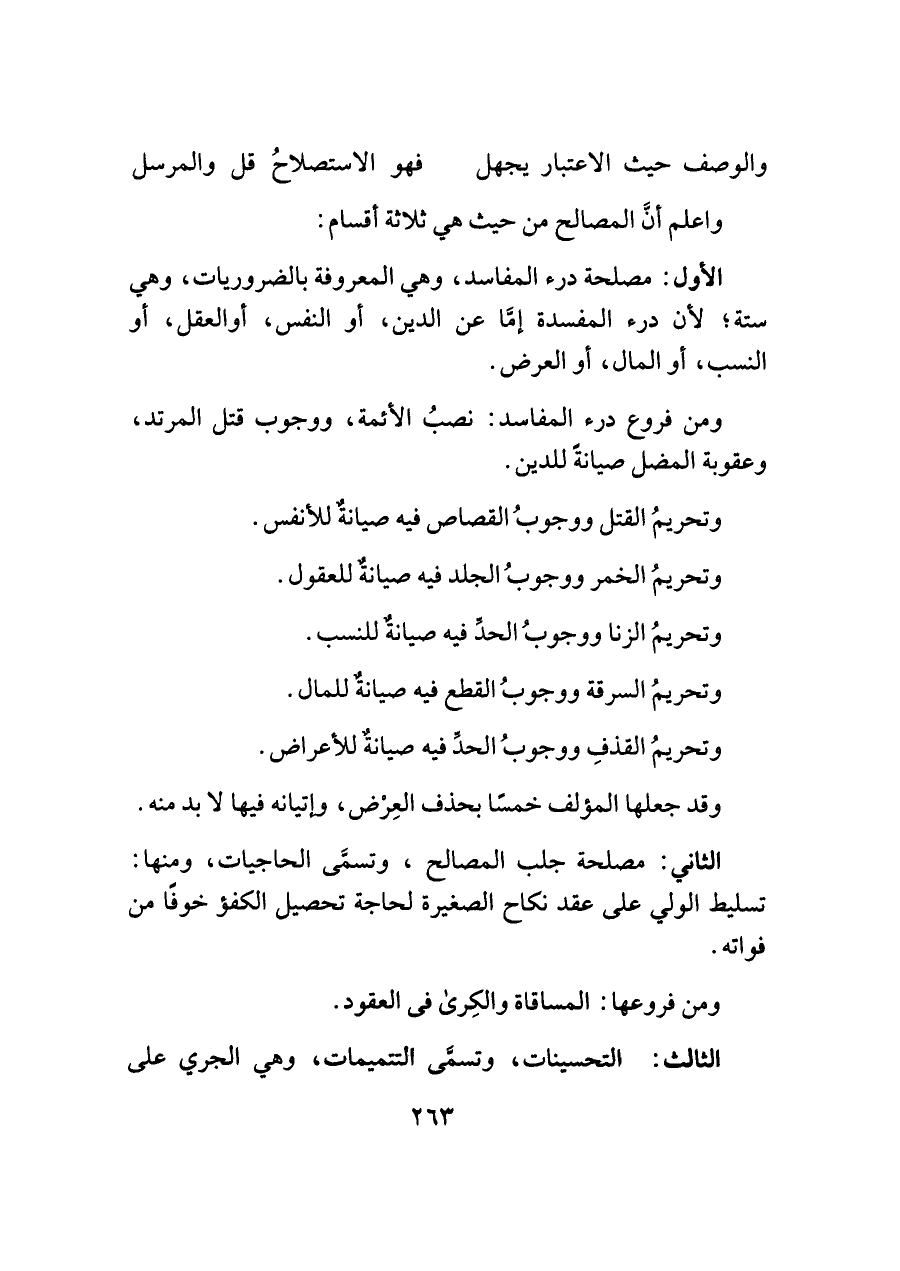 واعلم أنَّ المصالح من حيث هي ثلاثة أقسام: