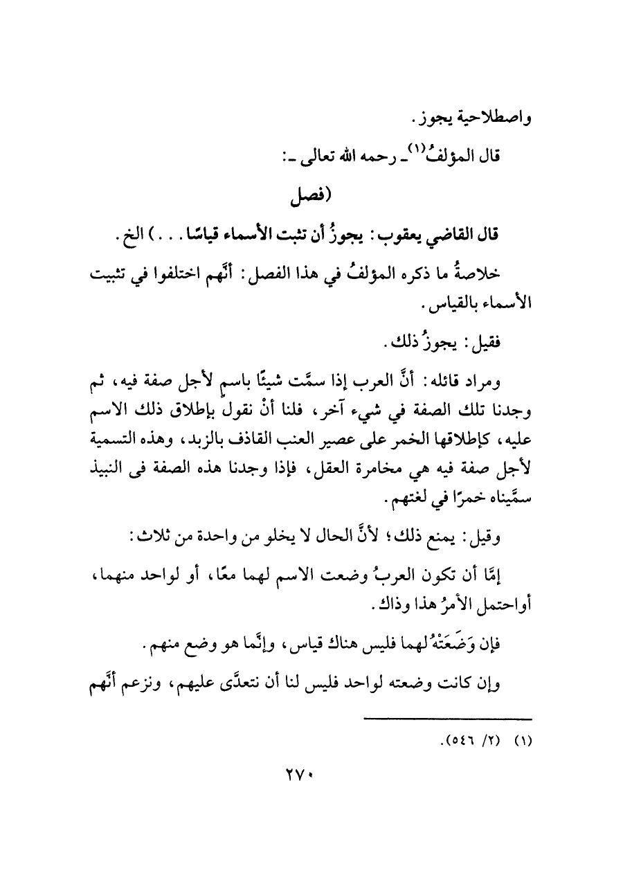 خلاصةُ ما ذكره المؤلفُ في هذا الفصل: أنَّهم اختلفوا في تثبيت الأسماء بالقياس.