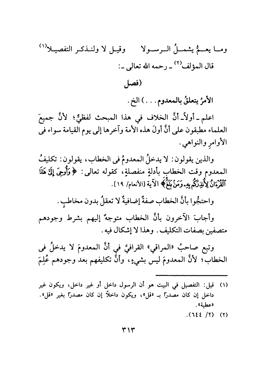 الأمرُ يتعلقُ بالمعدوم. . .) إلخ.