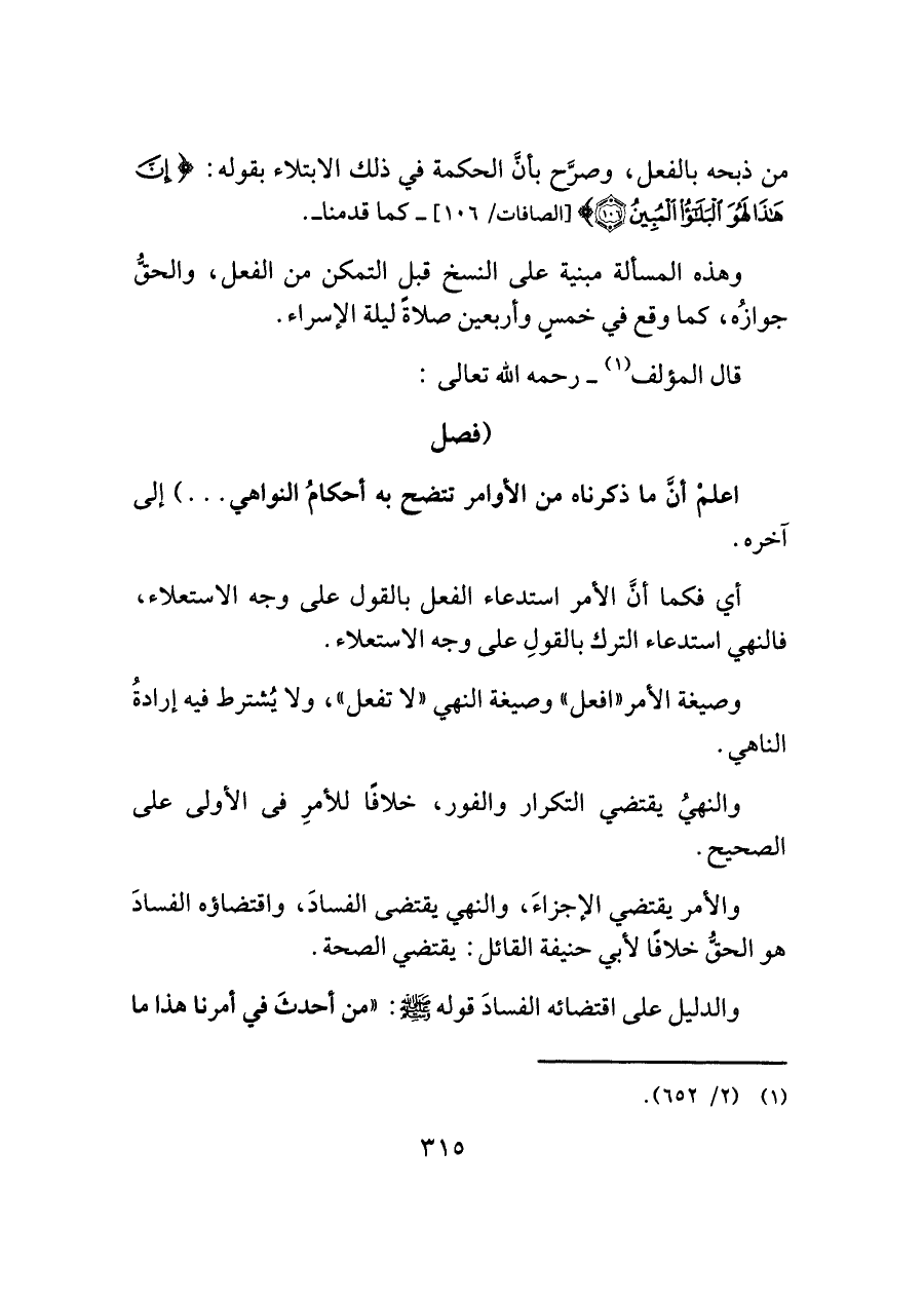 اعلمْ أنَّ ما ذكرناه من الأوامر تتضح به أحكامُ النواهي. . .) إلى آخره.