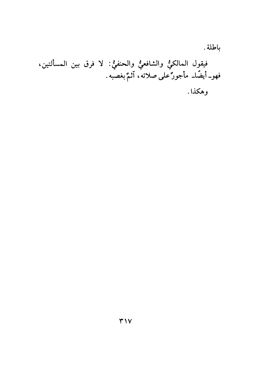 فيقول المالكيُّ والشافعيُّ والحنفيُّ: لا فرق بين المسألتين، فهو -أيضًا- مأجورٌ على صلاته، آثمٌ بغصبه.