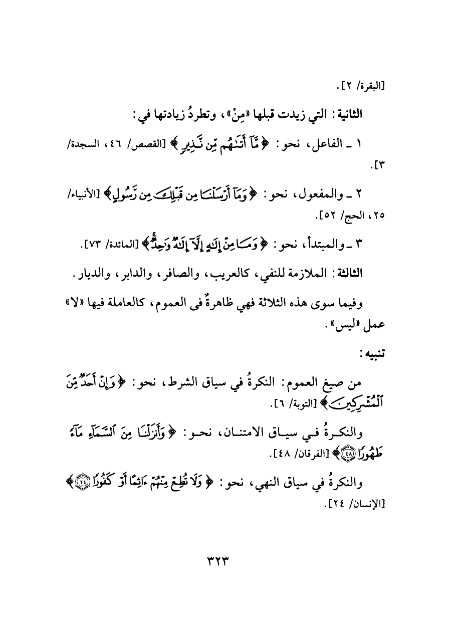 ١ - الفاعل، نحو: {مَا أَتَاهُمْ مِنْ نَذِيرٍ} [القصص/ ٤٦، السجدة/ ٣].