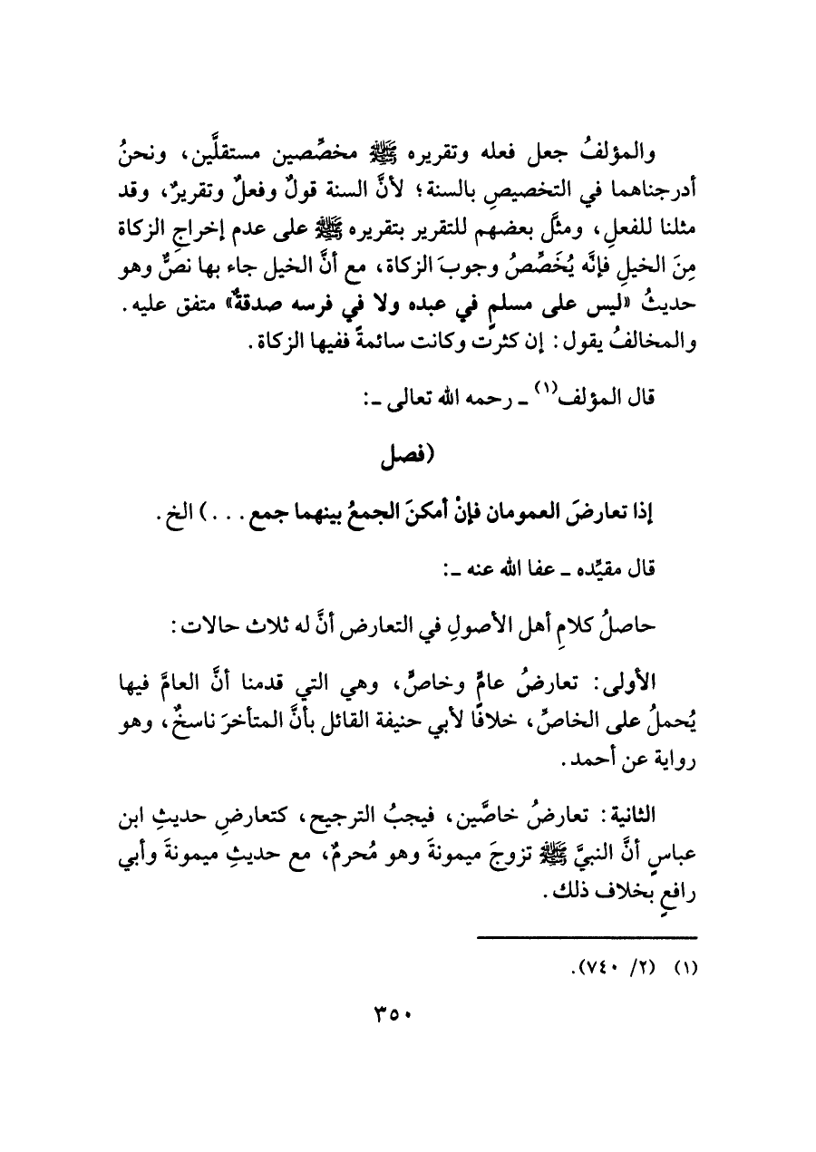 إذا تعارضَ العمومان فإن أمكنَ الجمعُ بينهما جمع. . .) إلخ.