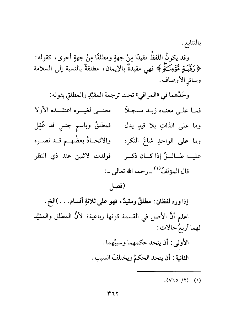وحَدَّهما في "المراقي" تحت ترجمة المقيَّدِ والمطلقِ بقوله: