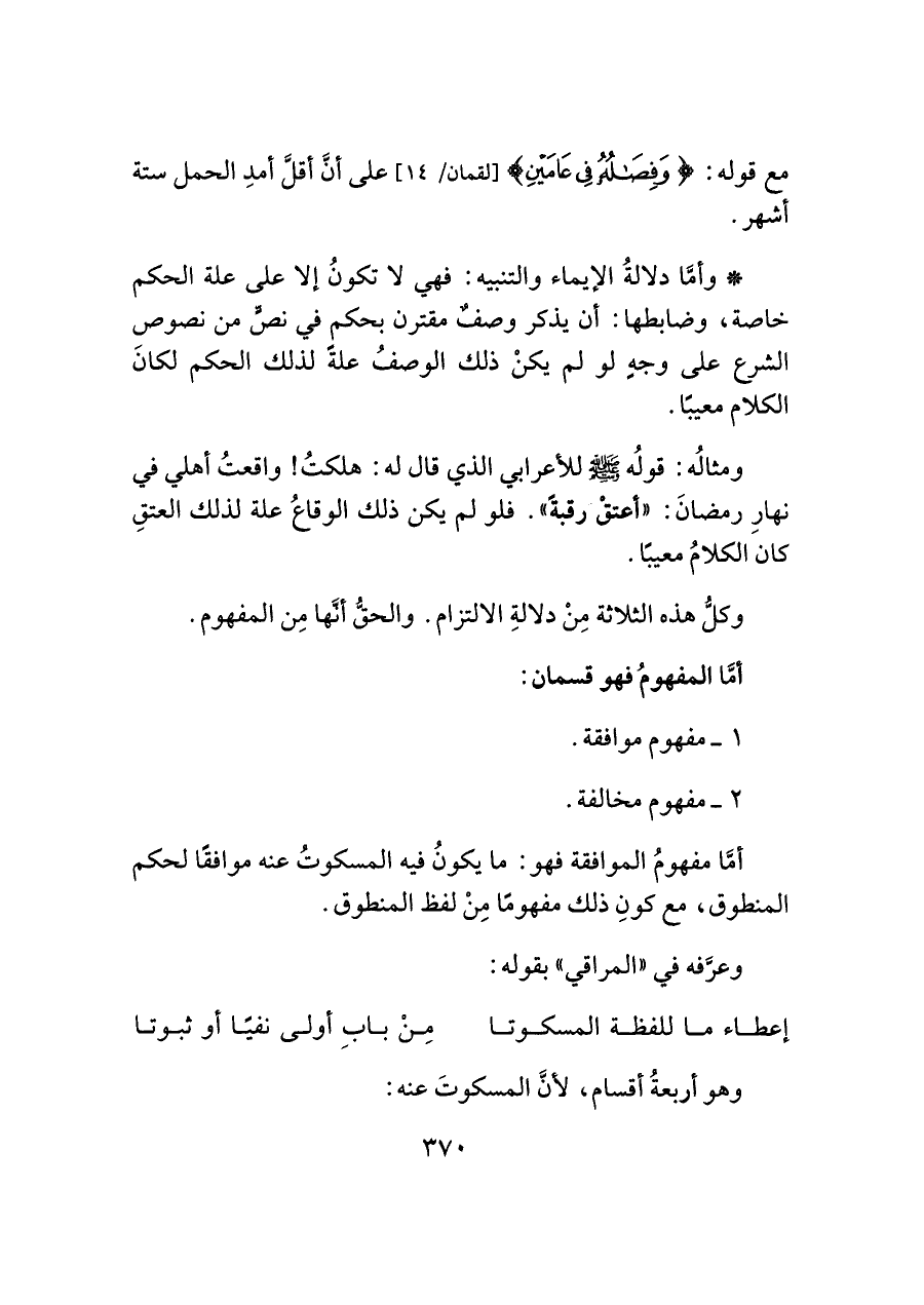 وكلُّ هذه الثلاثة مِنْ دلالةِ الالتزام. والحقُّ أنَّها مِن المفهوم.