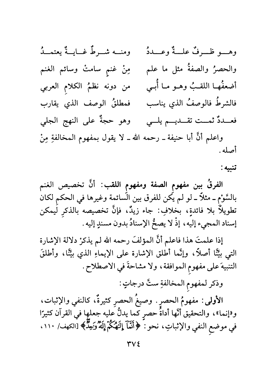 والحصرُ والصفةُ مثل ما علم ... مِنْ غنمٍ سامتْ وسائم الغنم