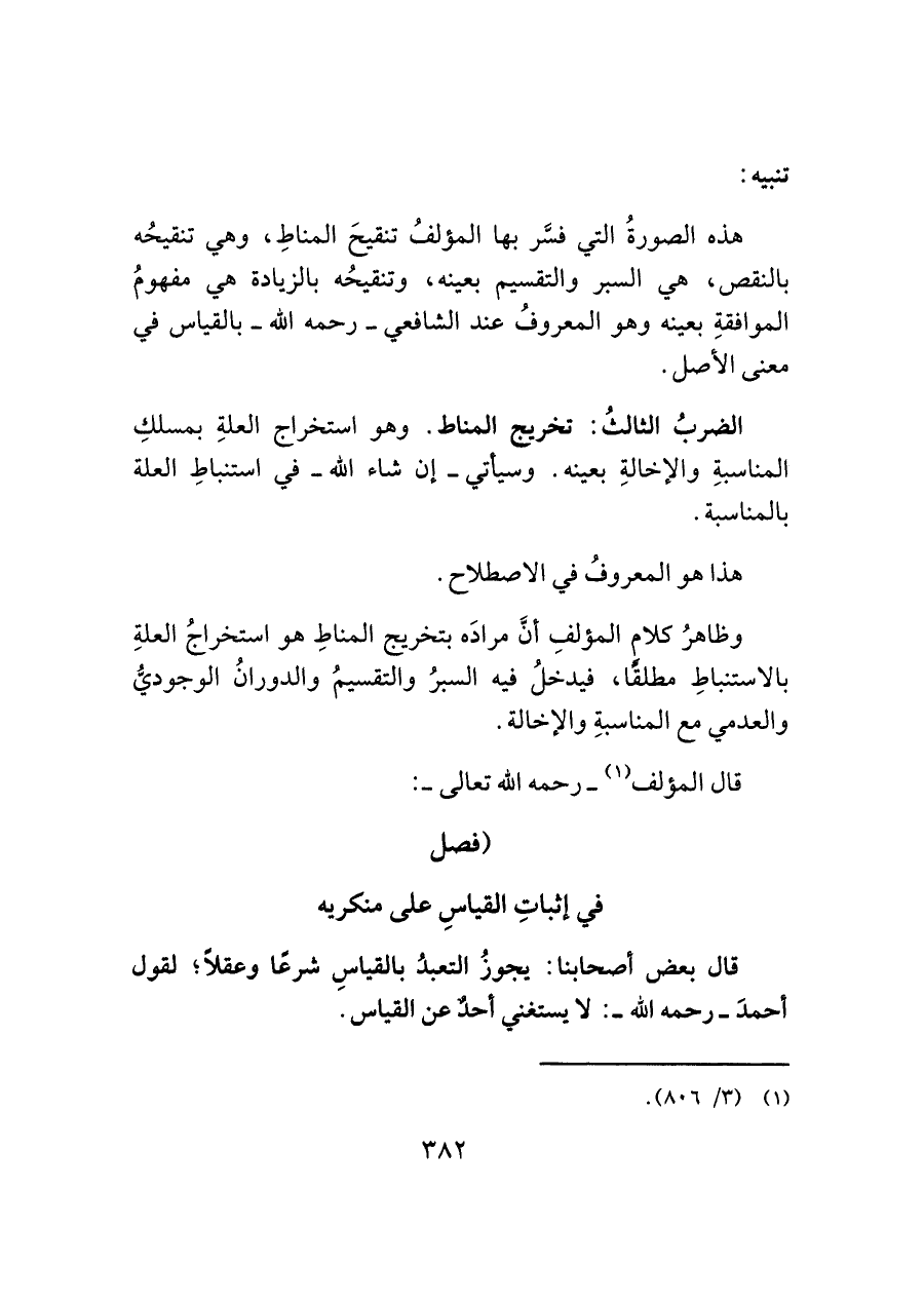 الضربُ الثالثُ: تخريج المناط. وهو استخراج العلةِ بمسلكِ المناسبةِ والإخالةِ بعينه. وسيأتي -إن شاء اللَّه- في استنباطِ العلة بالمناسبة.