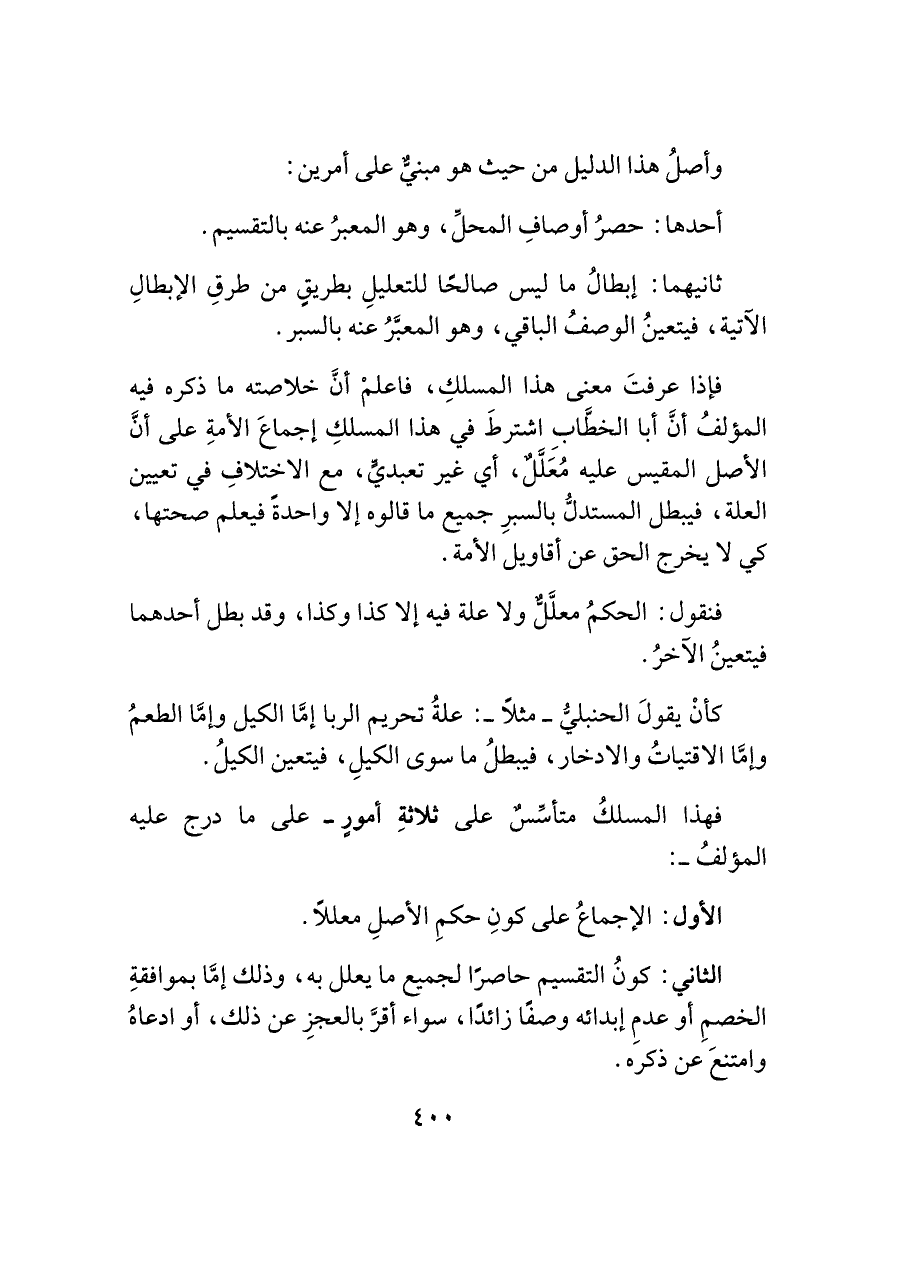 فهذا المسلكُ متأسِّسٌ على ثلاثةِ أمورٍ -على ما درج عليه المؤلفُ-: