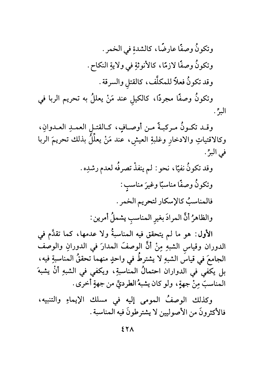 وكذلك الوصفُ المومى إليه في مسلك الإيماءِ والتنبيه، فالأكثرونَ من الأصوليين لا يشترطونَ فيه المناسبة.