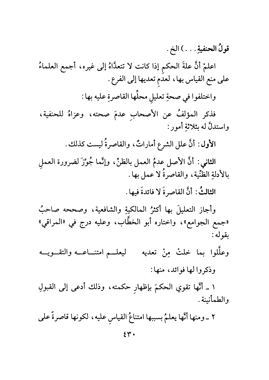 وأجاز التعليلَ بها أكثرُ المالكيةِ والشافعية، وصححه صاحبُ "جمع الجوامع"، واختاره أبو الخطَّاب، وعليه درج في "المراقي" بقوله: