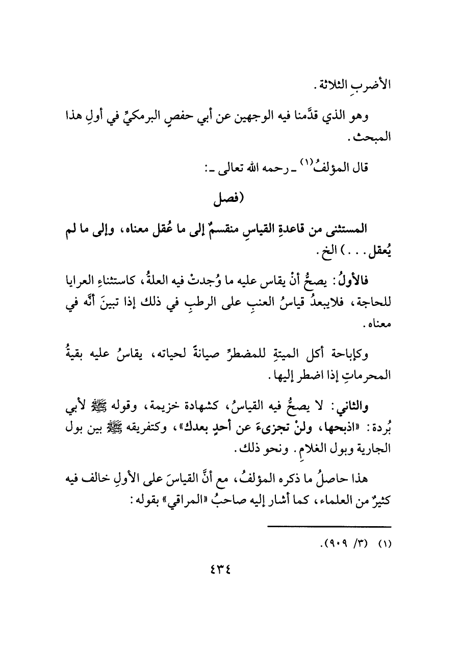 المستثنى من قاعدةِ القياسِ منقسمٌ إلى ما عُقل معناه، وإلى ما لم يُعقل. . .) الخ.