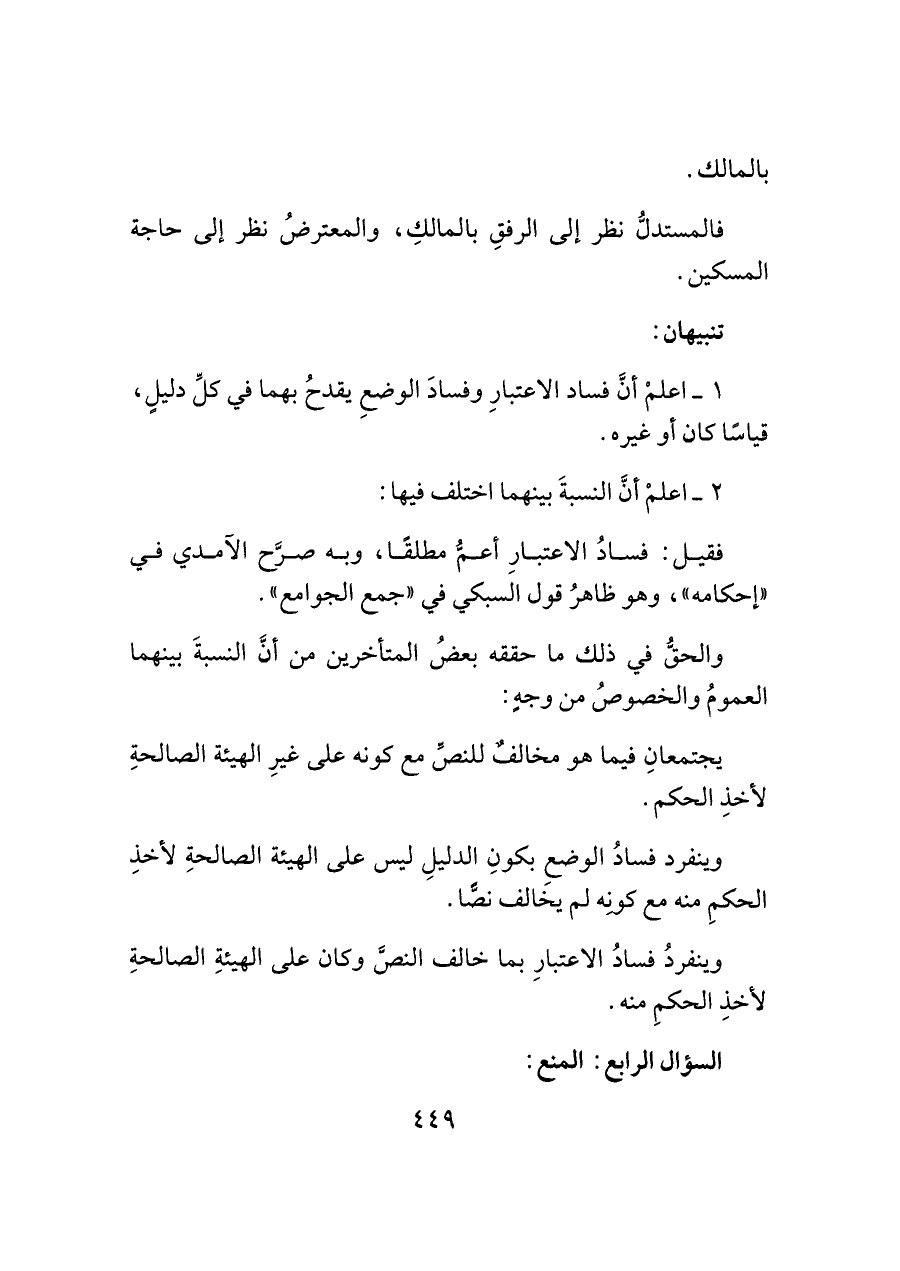 فقيل: فسادُ الاعتبارِ أعمُّ مطلقًا، وبه صرَّح الآمدي في "إحكامه"، وهو ظاهرُ قول السبكي في "جمع الجوامع".
