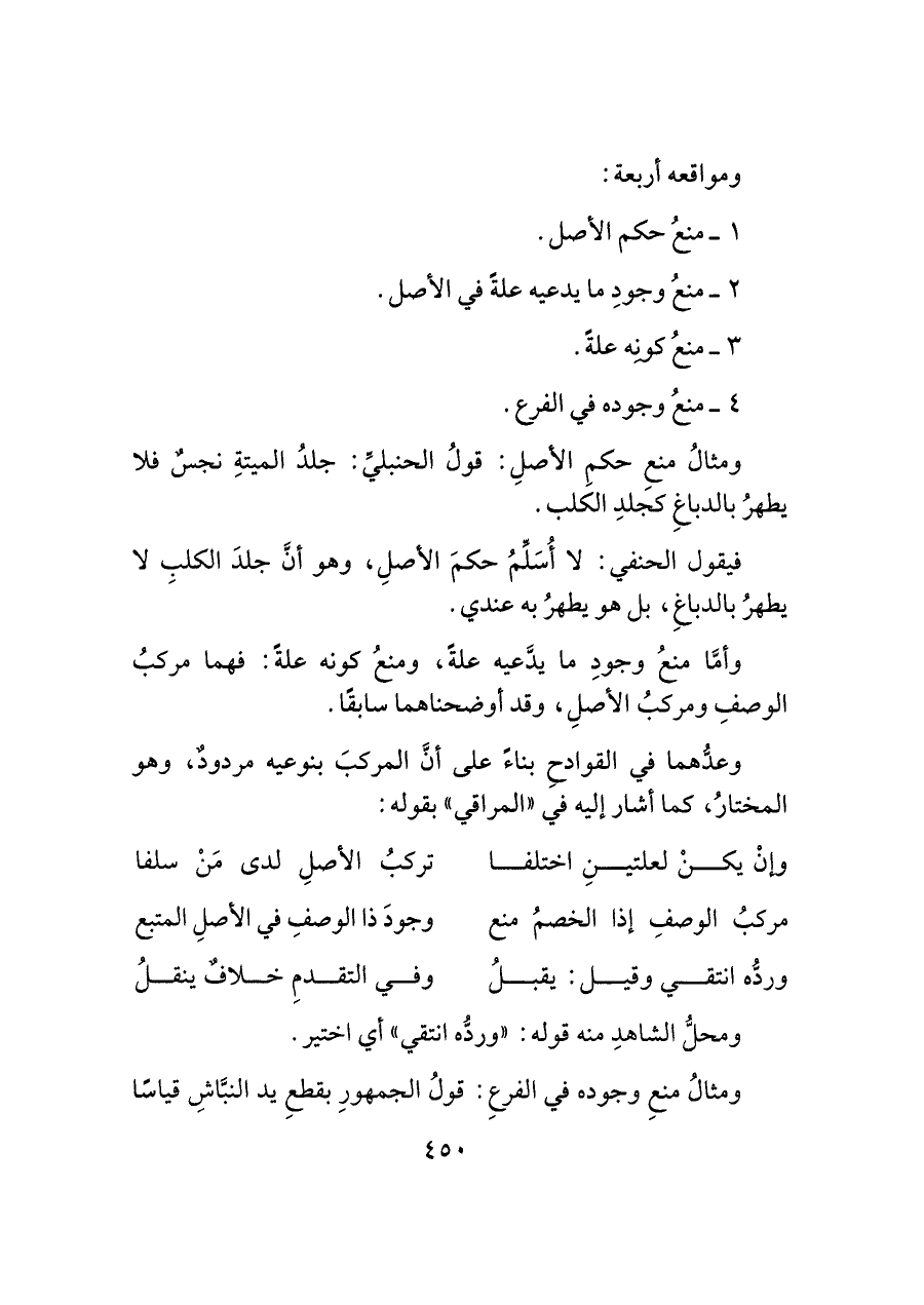 وأمَّا منعُ وجودِ ما يدَّعيه علةً، ومنعُ كونه علةً: فهما مركبُ الوصفِ ومركبُ الأصلِ، وقد أوضحناهما سابقًا.