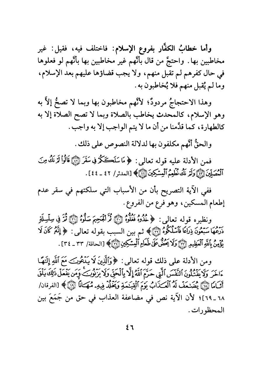 وهذا الاحتجاجُ مردودٌ؛ لأنَّهم مخاطبون بها وبما لا تصحُّ إلَّا به وهو الإسلام، كالمحدث يخاطب بالصلاة وبما لا تصح الصلاة إلا به كالطهارة، كما قدَّمنا من أن ما لا يتم الواجب إلا به واجب،