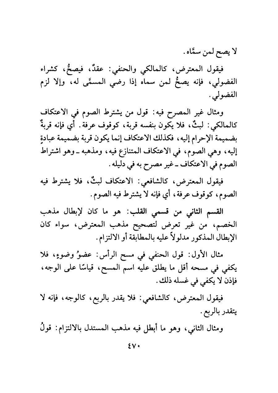 القسم الثاني من قسمي القلب: هو ما كان لإبطال مذهب الخصم، من غير تعرض لتصحيح مذهب المعترض، سواء كان الإبطال المذكور مدلولًا عليه بالمطابقة أو الالتزام.