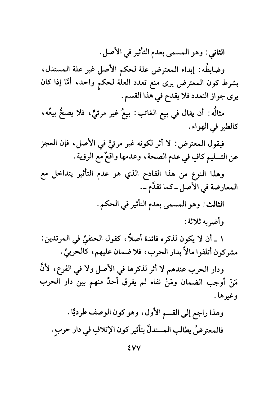 الثاني: وهو المسمى بعدم التأثير في الأصل.