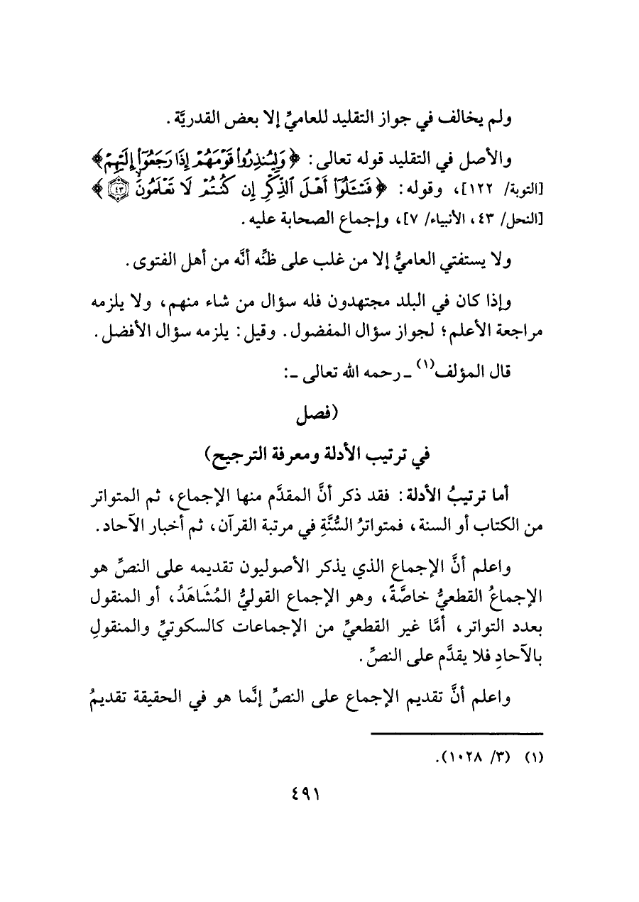 (فصل في ترتيب الأدلة ومعرفة الترجيح)