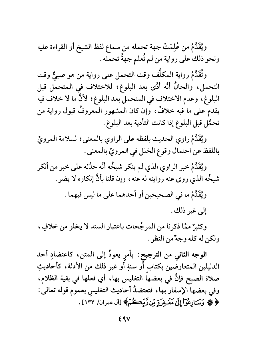 وكثيرٌ ممَّا ذكرنا من المرجِّحات باعتبار السند لا يخلو من خلافٍ، ولكن له كله وجهٌ من النظر.
