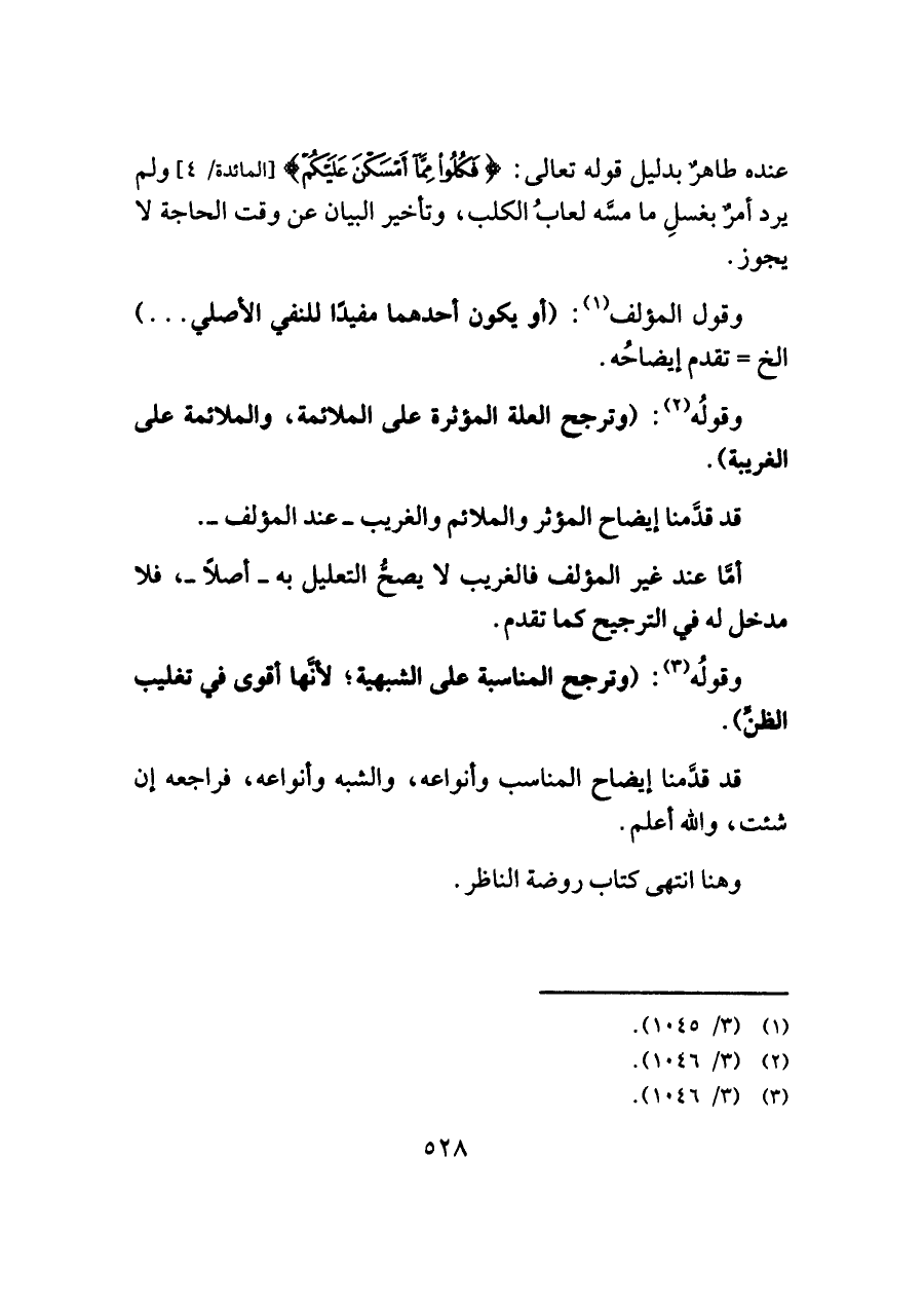 وقول المؤلف (¬١): (أو يكون أحدهما مفيدًا للنفي الأصلي. . .) الخ = تقدم إيضاحُه.