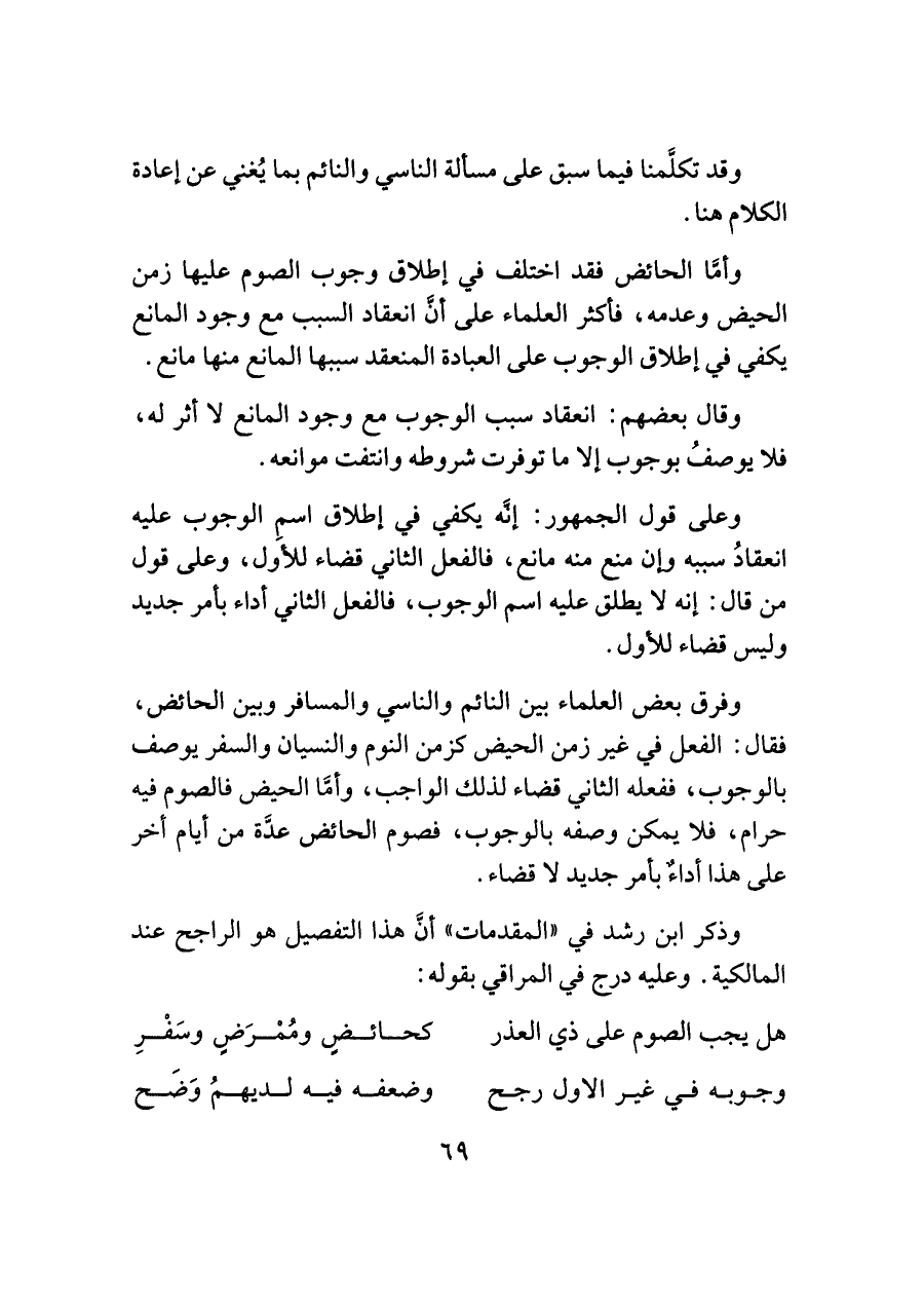 هل يجب الصوم على ذي العذر ... كحائضٍ ومُمْرَضٍ وسَفْرِ