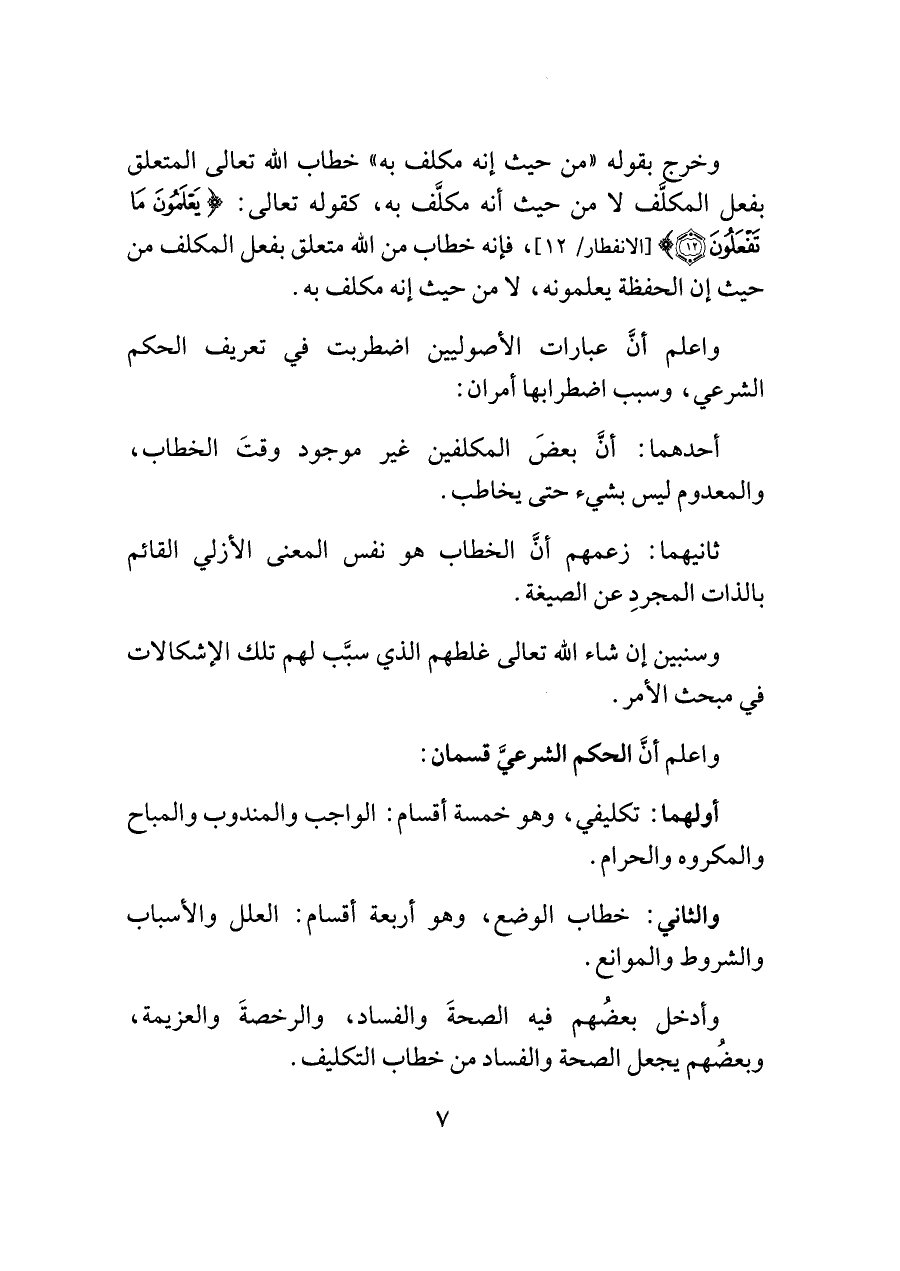 واعلم أنَّ الحكم الشرعيَّ قسمان: