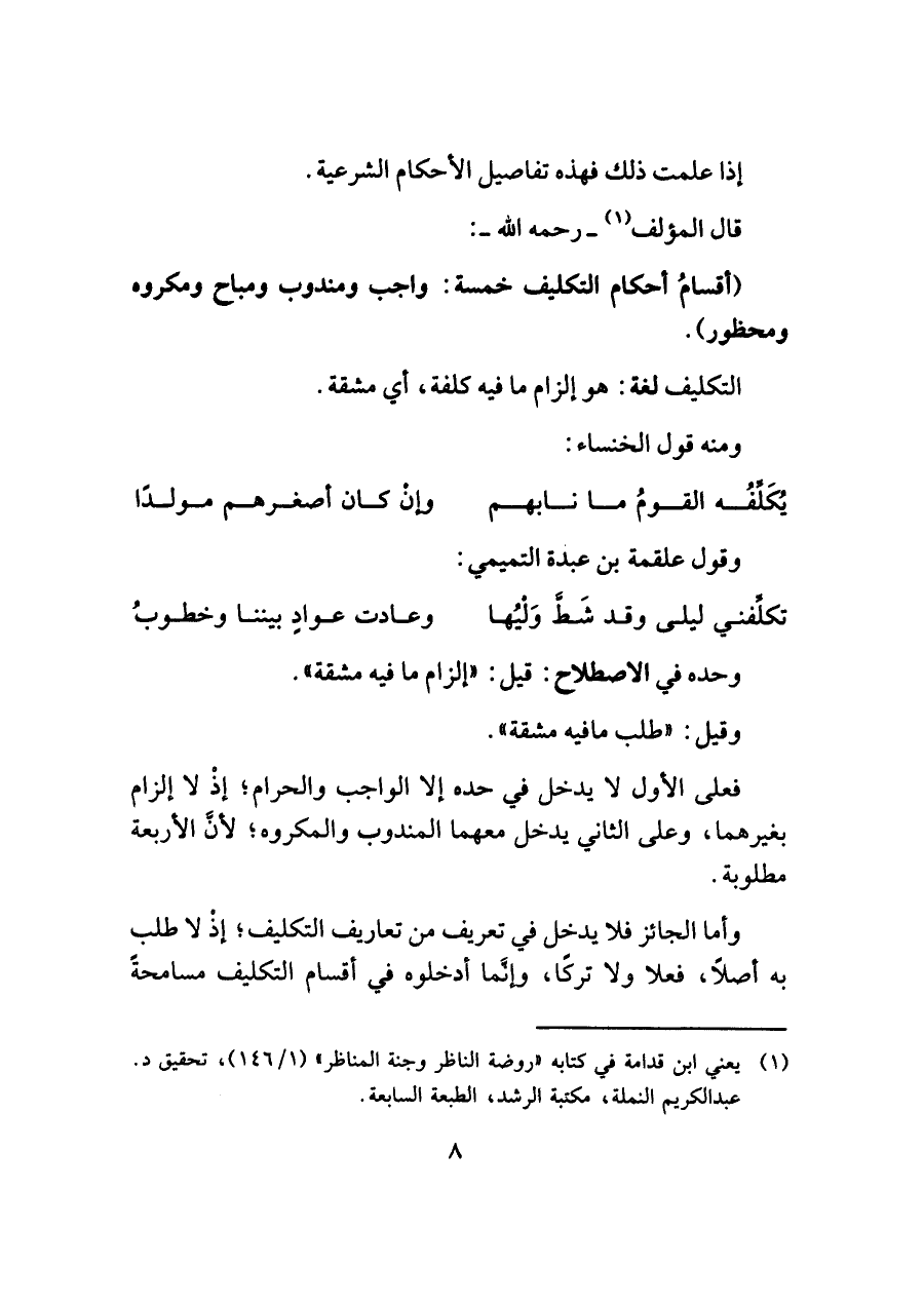 (¬١) يعني ابن قدامة في كتابه "روضة الناظر وجنة المناظر" (١/ ١٤٦)، تحقيق د. عبد الكريم النملة، مكتبة الرشد، الطبعة السابعة.