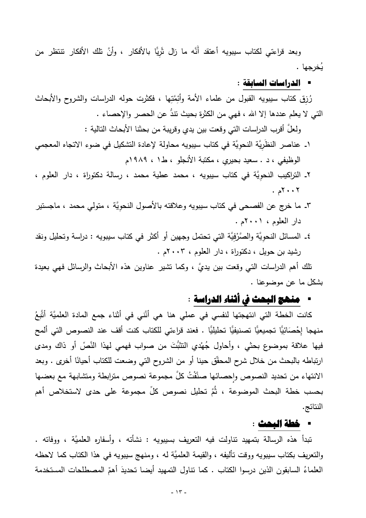 4 ـــ المسائل النحوِيَّة والصَّرْفِيَّة التي تحتمل وجهين أو أكثر في كتاب سيبويه: دراسة وتحليل ونقد رشيد بن حويل، دكتوراة، دار العلوم، 2003 م.