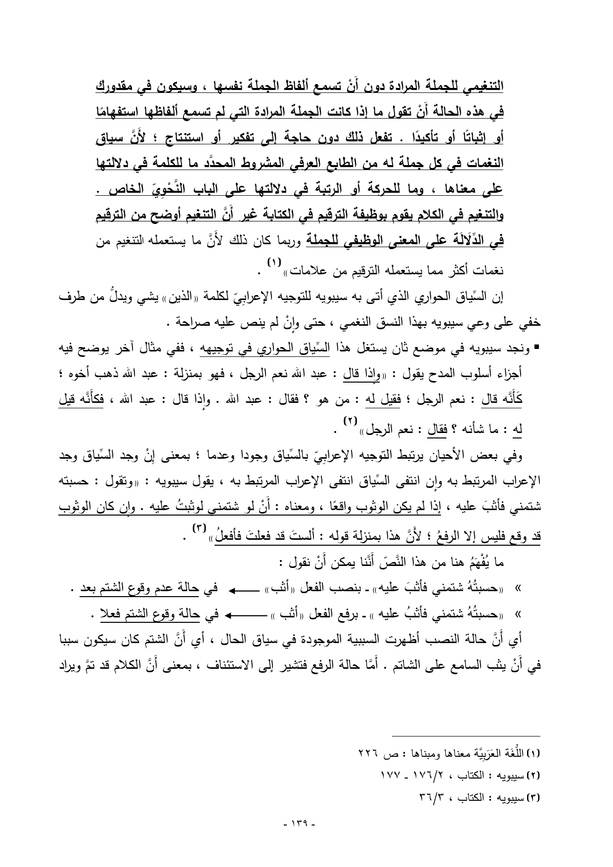 (¬1) اللُّغَة العَرَبِيَّة معناها ومبناها: ص 226