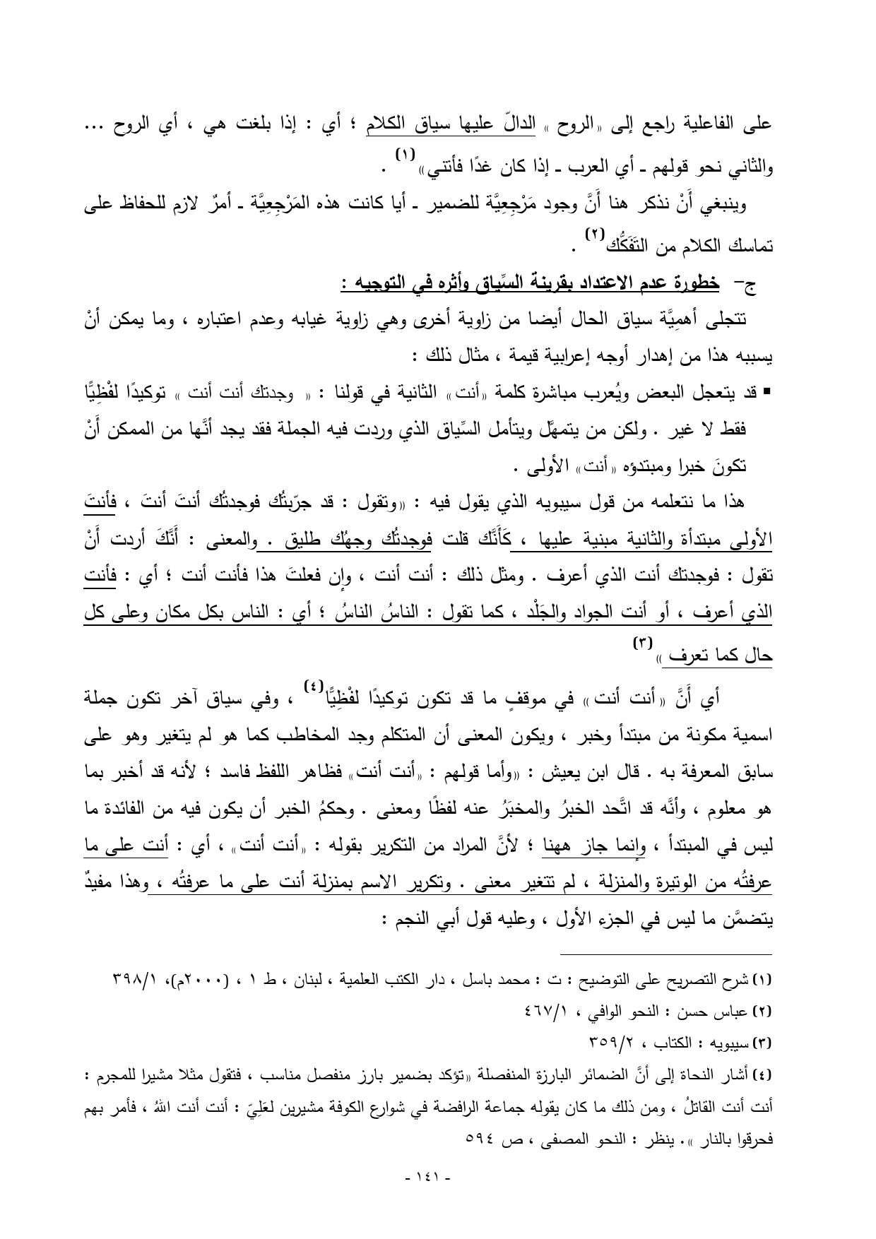 ج خطورة عدم الاعتداد بقرينة السِّياق وأثره في التوجيه: