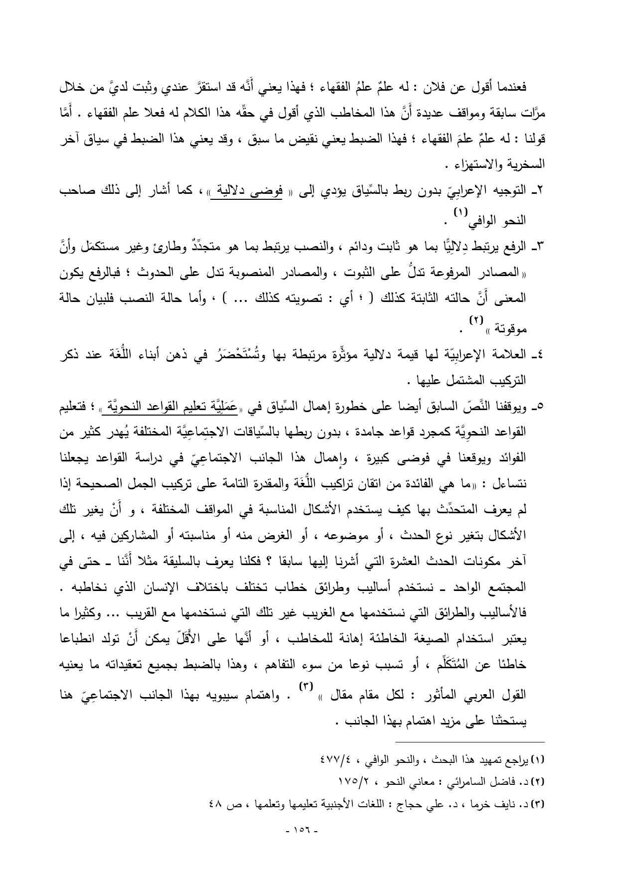 2 ــــ التوجيه الإعرابِيّ بدون ربط بالسِّياق يؤدي إلى «فوضى دلالية»، كما أشار إلى ذلك صاحب النحو الوافي) (¬1).