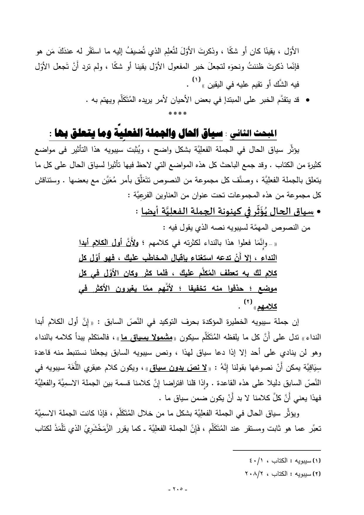 المبحث الثاني: سياق الحال والجملة الفعلِيَّة وما يتعلق بها: