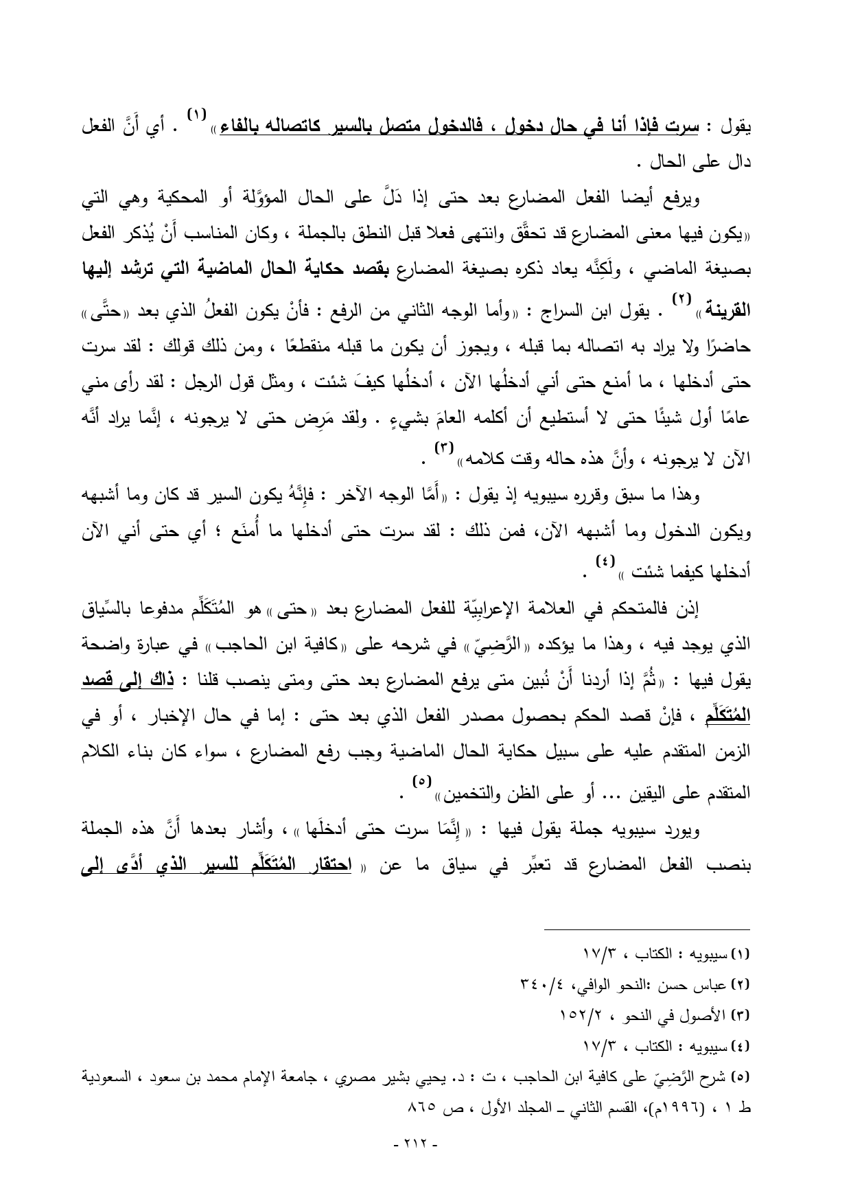(¬5) شرح الرَّضِيّ على كافية ابن الحاجب، ت: د. يحيي بشير مصري، جامعة الإمام محمد بن سعود، السعودية ط 1، ) 1996 م (، القسم الثاني ـــــ المجلد الأول، ص 865