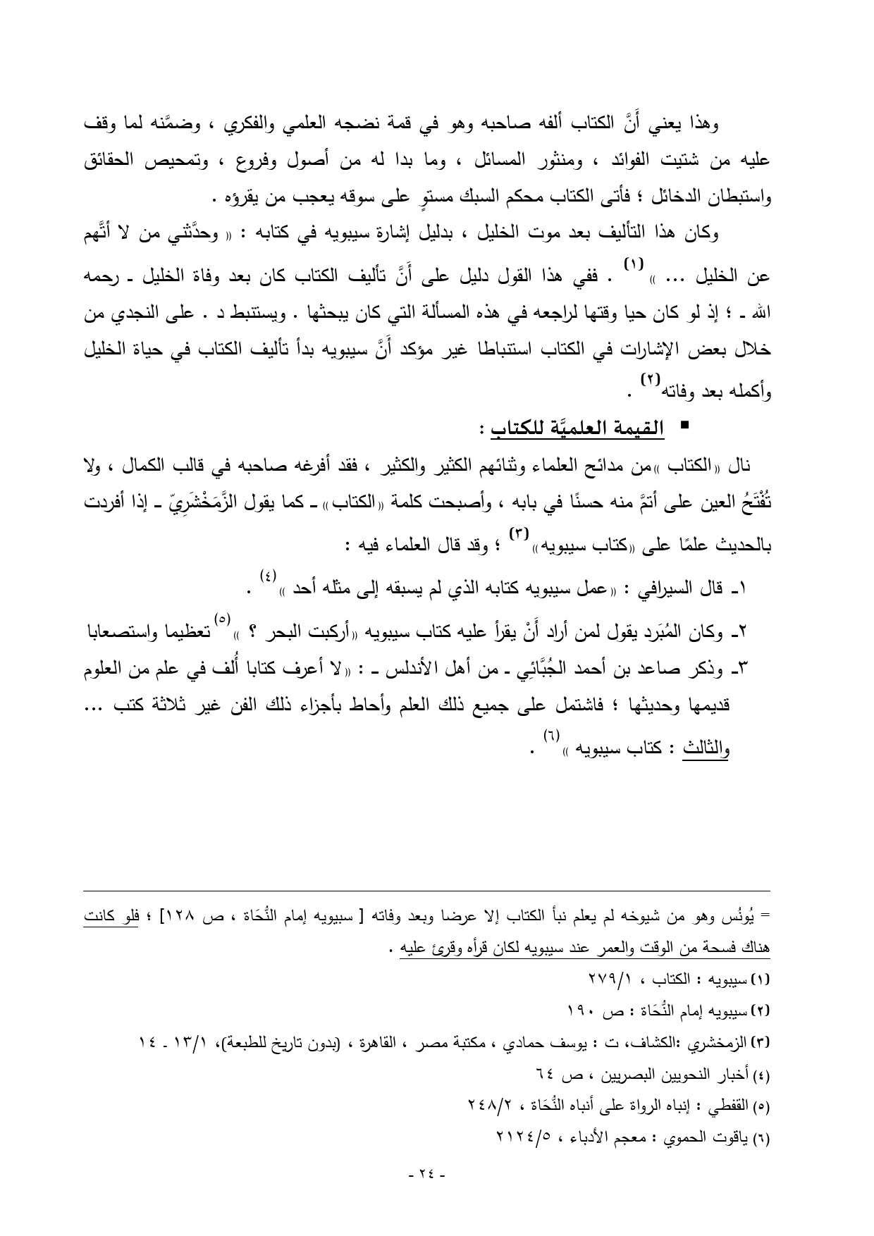 1 ــــ قال السيرافي: «عمل سيبويه كتابه الذي لم يسبقه إلى مثله أحد» (¬4).