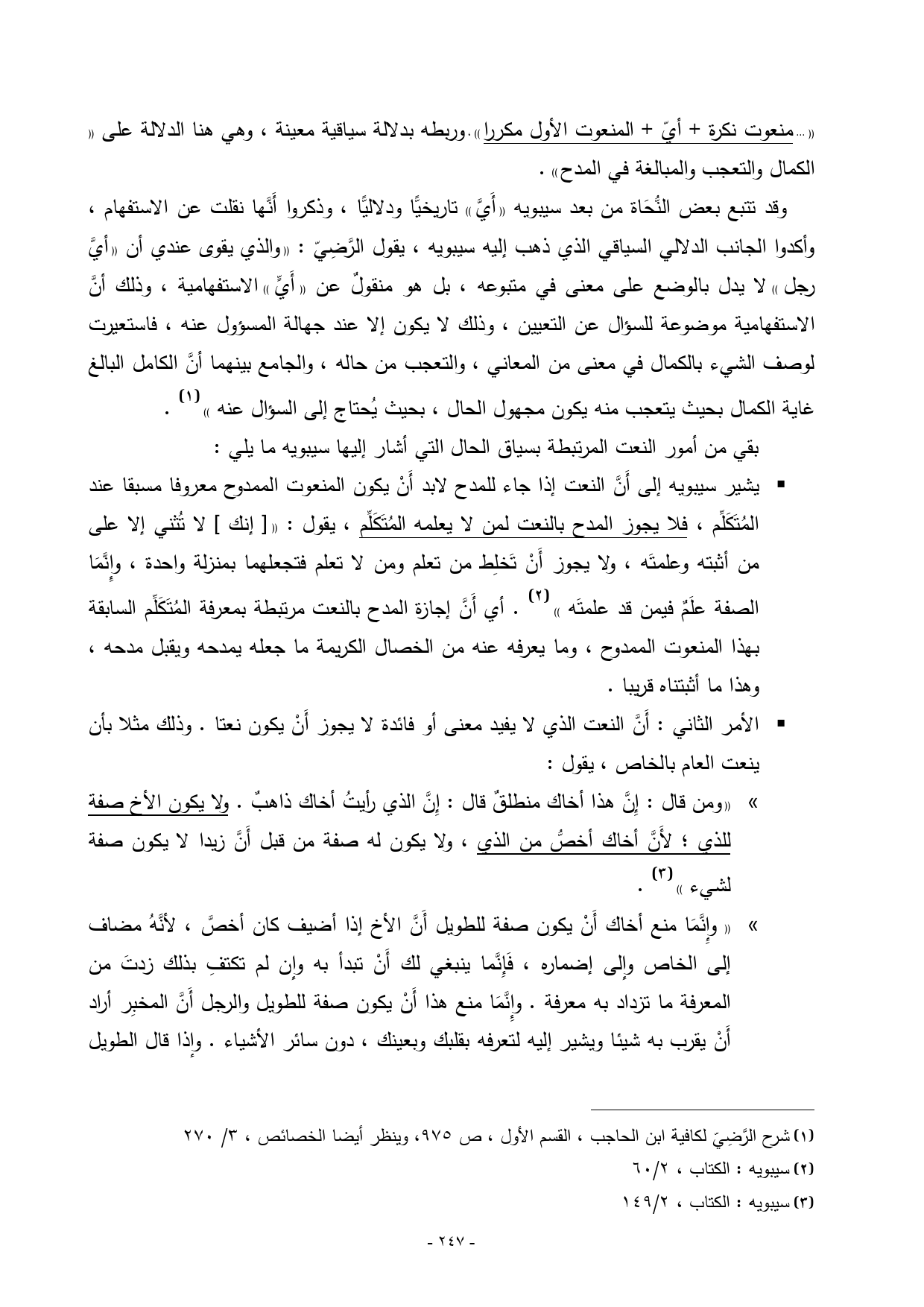 (¬1) شرح الرَّضِيّ لكافية ابن الحاجب، القسم الأول، ص 975، وينظر أيضا الخصائص، 3/ 270