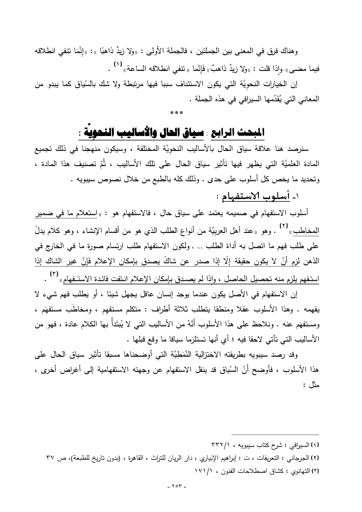 سنرصد هنا علاقة سياق الحال بالأساليب النحوِيَّة المختلفة، وسيكون منهجنا في ذلك تجميع المادة العلميَّة التي يظهر فيها تأثير سياق الحال على تلك الأساليب، ثُمَّ تصنيف هذا المادة، وتحديد ما يخص كل أسلوب على حدى. وذلك كله بالطبع من خلال نصوص سيبويه.