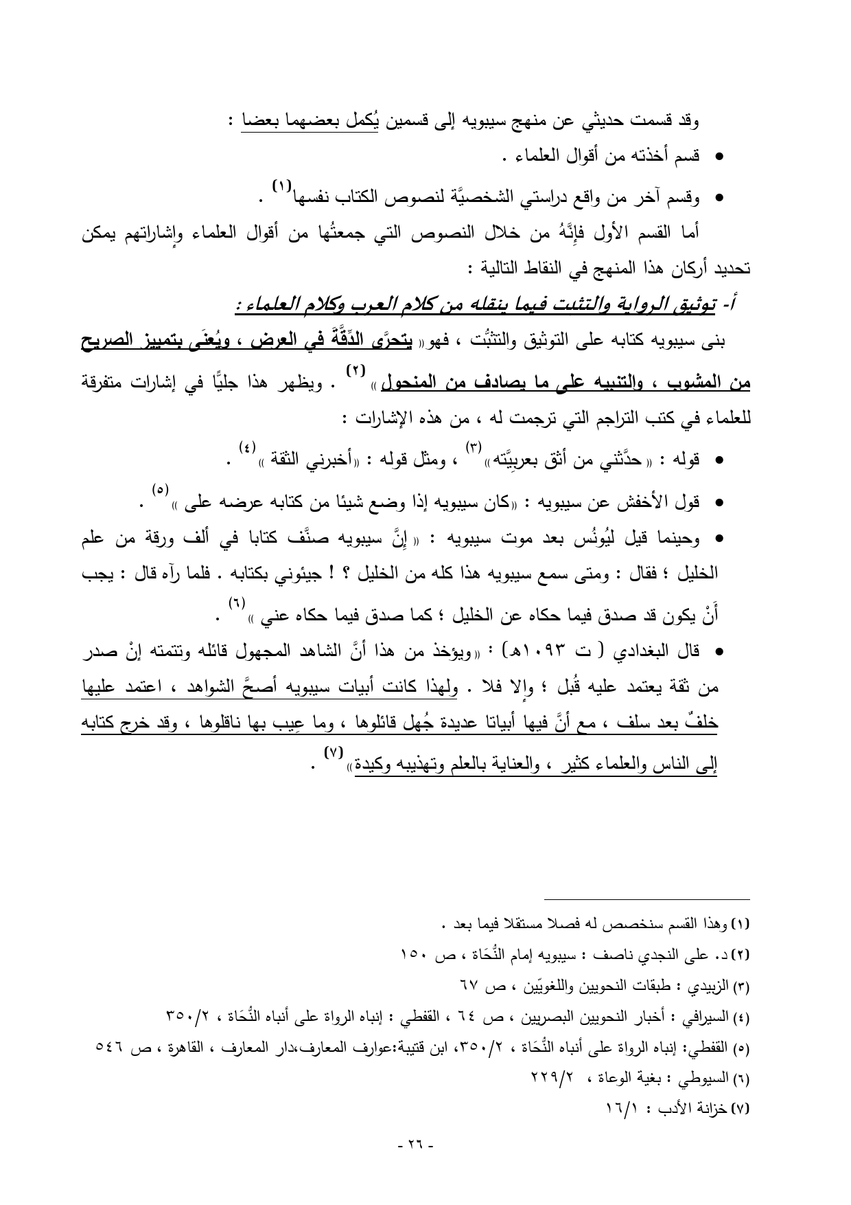وقد قسمت حديثي عن منهج سيبويه إلى قسمين يُكمل بعضهما بعضا: