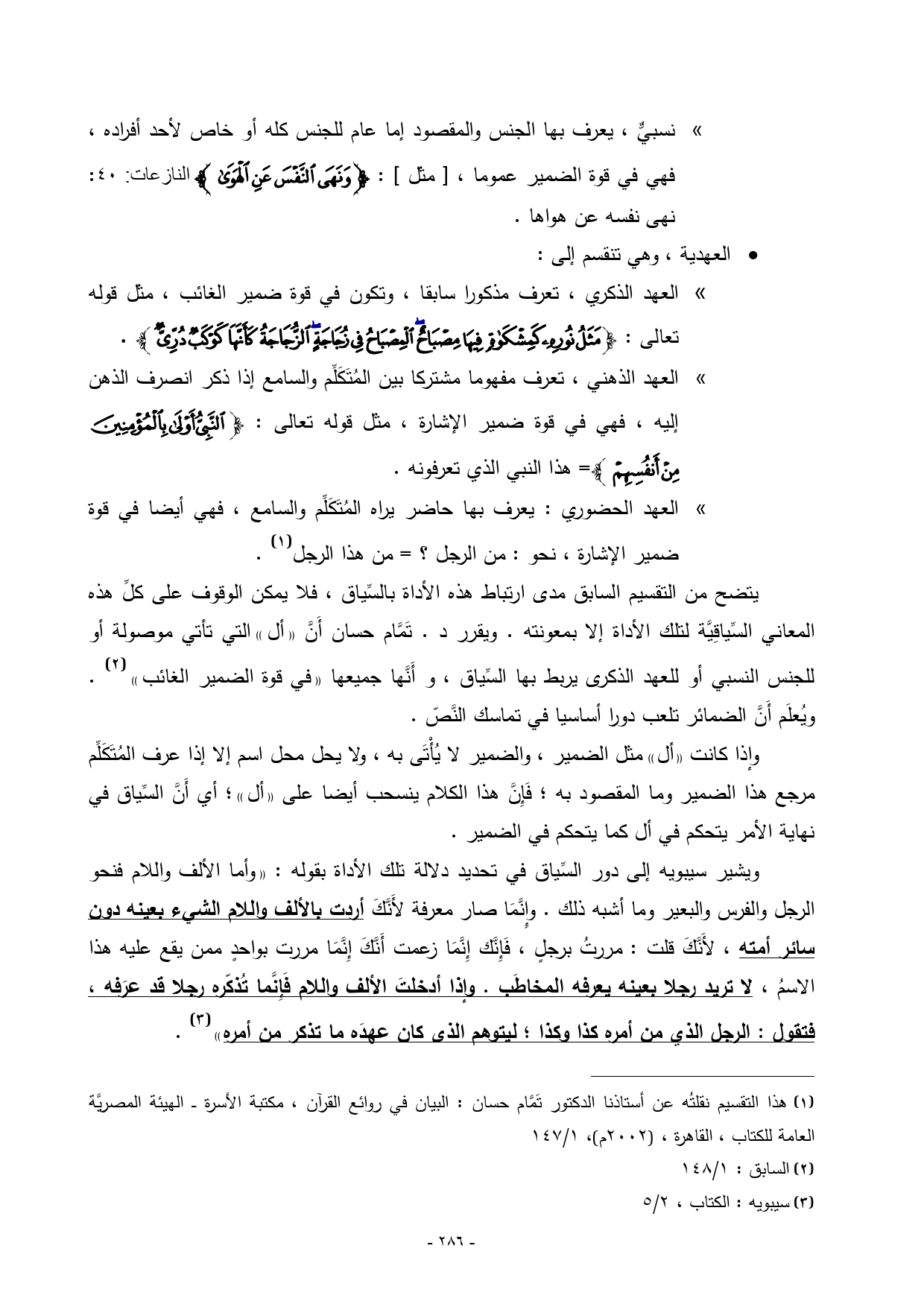 (¬1) هذا التقسيم نقلتُه عن أستاذنا الدكتور تَمَّام حسان: البيان في روائع القرآن، مكتبة الأسرة ـــ الهيئة المصريَّة العامة للكتاب، القاهرة، ) 2002 م (، 1/ 147