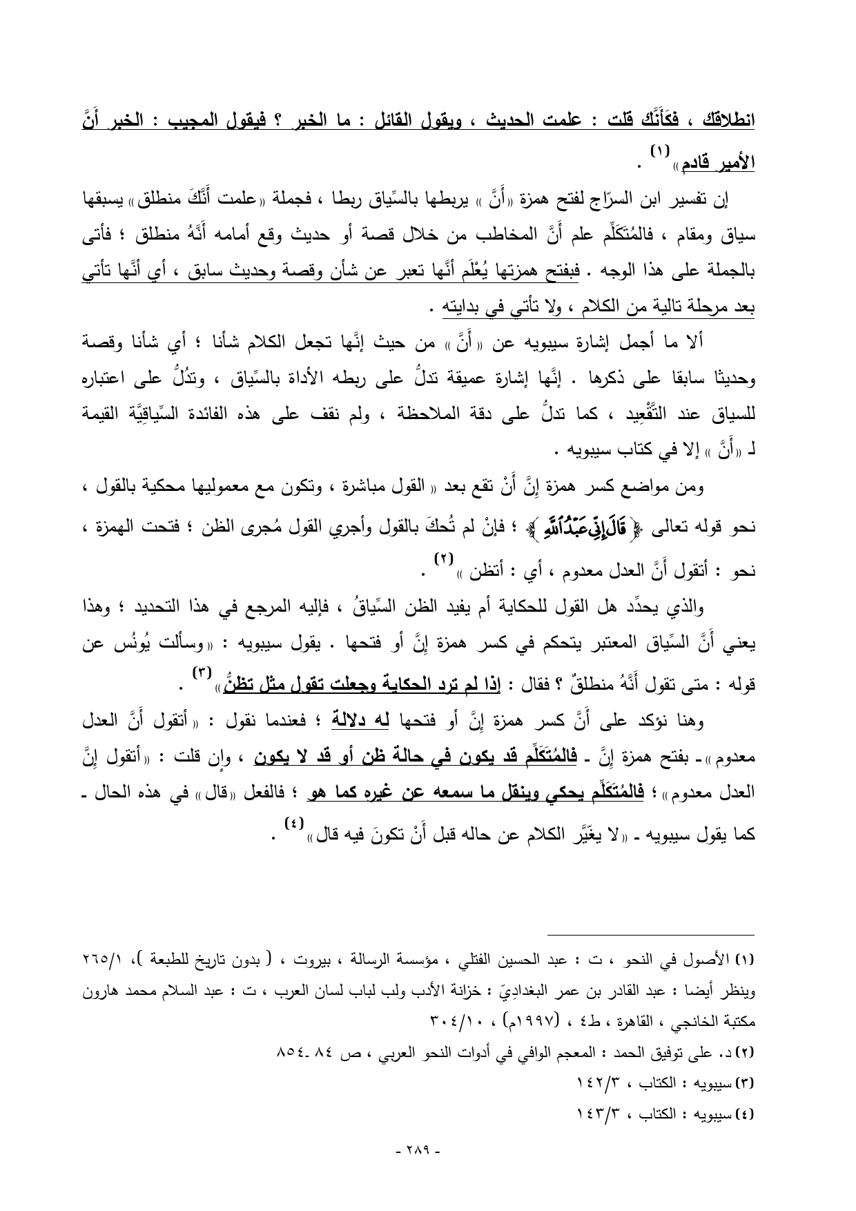 (¬1) الأصول في النحو، ت: عبد الحسين الفتلي، مؤسسة الرسالة، بيروت، ) بدون تاريخ للطبعة (، 1/ 265 وينظر أيضا: عبد القادر بن عمر البغدادِيّ: خزانة الأدب ولب لباب لسان العرب، ت: عبد السلام محمد هارون مكتبة الخانجي، القاهرة، ط 4، ) 1997 م (، 10/ 304