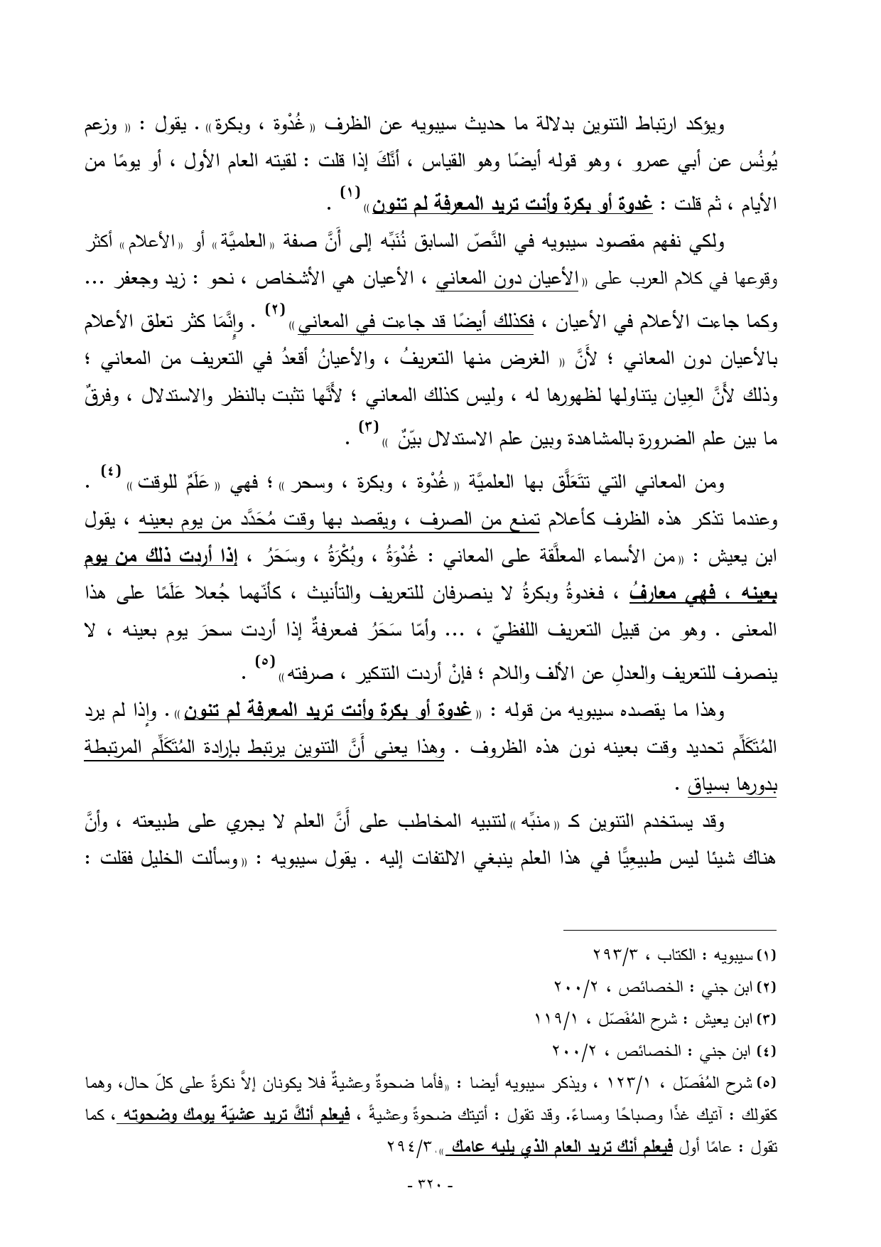 (¬5) شرح المُفَصّل، 1/ 123، ويذكر سيبويه أيضا: ((فأما ضحوةٌ وعشيةٌ فلا يكونان إلاَّ نكرةً على كلّ حال، وهما كقولك: آتيك غذًا وصباحًا ومساءً. وقد تقول: أتيتك ضحوةً وعشيةً، فيعلم أنكَّ تريد عشيّة يومك وضحوته، كما تقول: عامًا أول فيعلم أنك تريد العام الذي يليه عامك))، 3/ 294