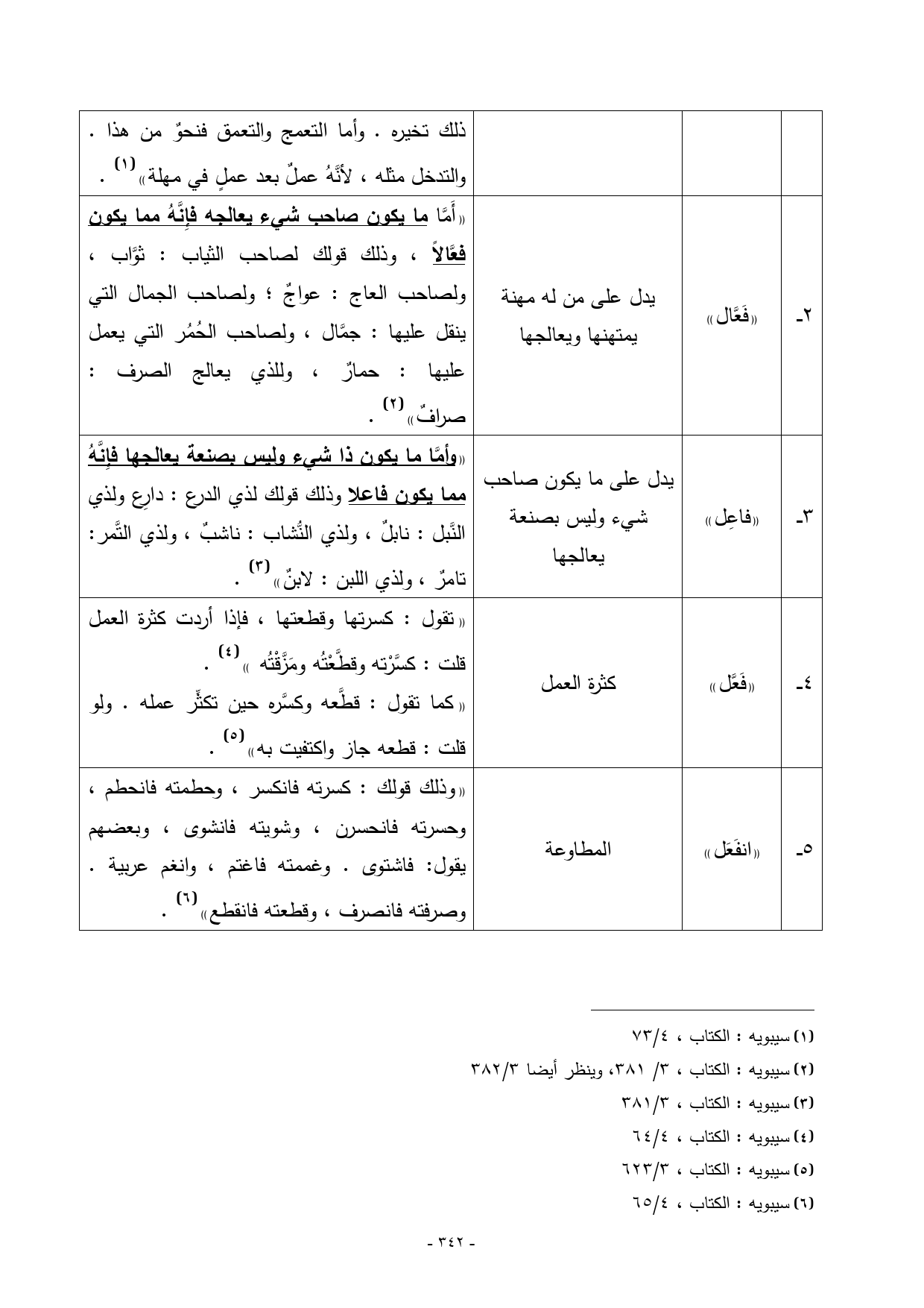 2 ـــ ... «فَعَّال» ... يدل على من له مهنة يمتهنها ويعالجها ... «أَمَّا ما يكون صاحب شيء يعالجه فإِنَّهُ مما يكون فعَّالاً، وذلك قولك لصاحب الثياب: ثوَّاب، ولصاحب العاج: عواجٌ؛ ولصاحب الجمال التي ينقل عليها: جمَّال، ولصاحب الحُمُر التي يعمل عليها: حمارٌ، وللذي يعالج الصرف: ... صرافٌ») (¬2).