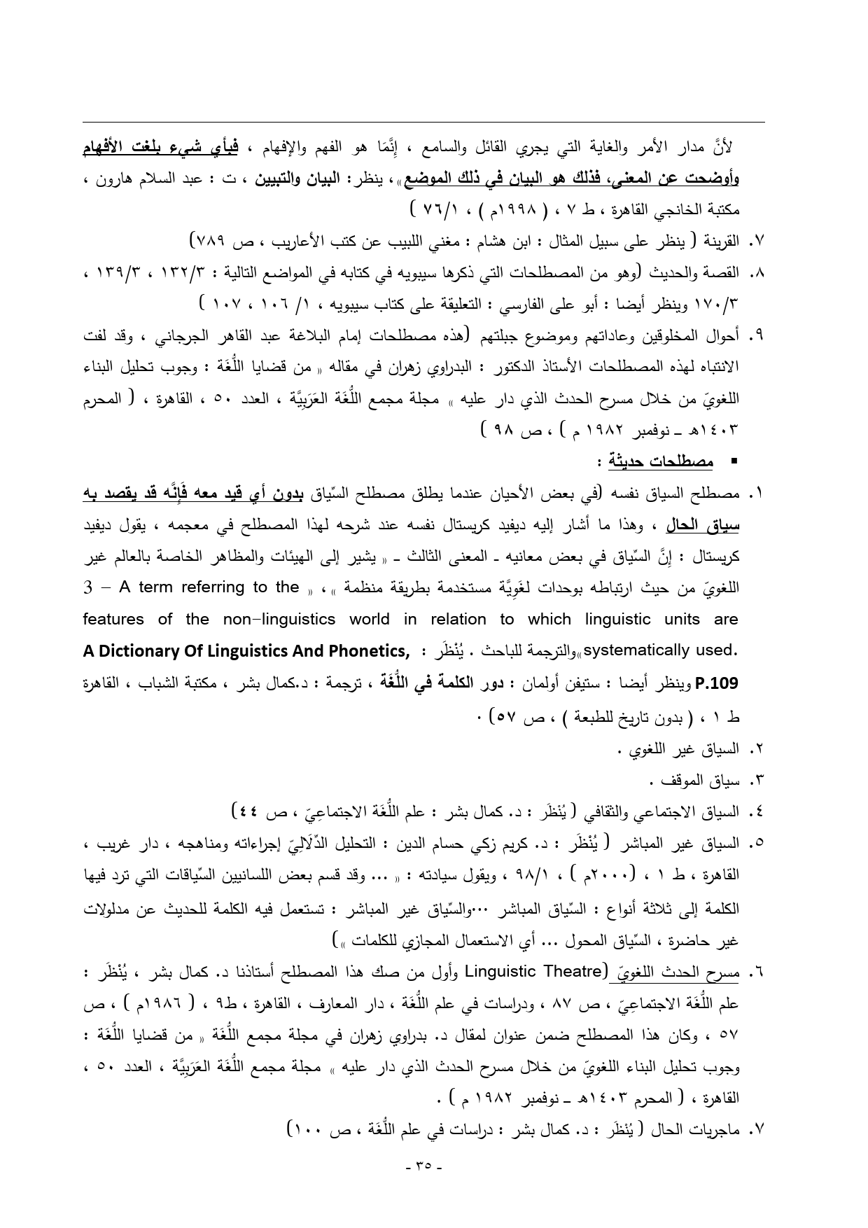 4. ... السياق الاجتماعي والثقافي (يُنْظَر: د. كمال بشر: علم اللُّغَة الاجتماعِيّ، ص 44)