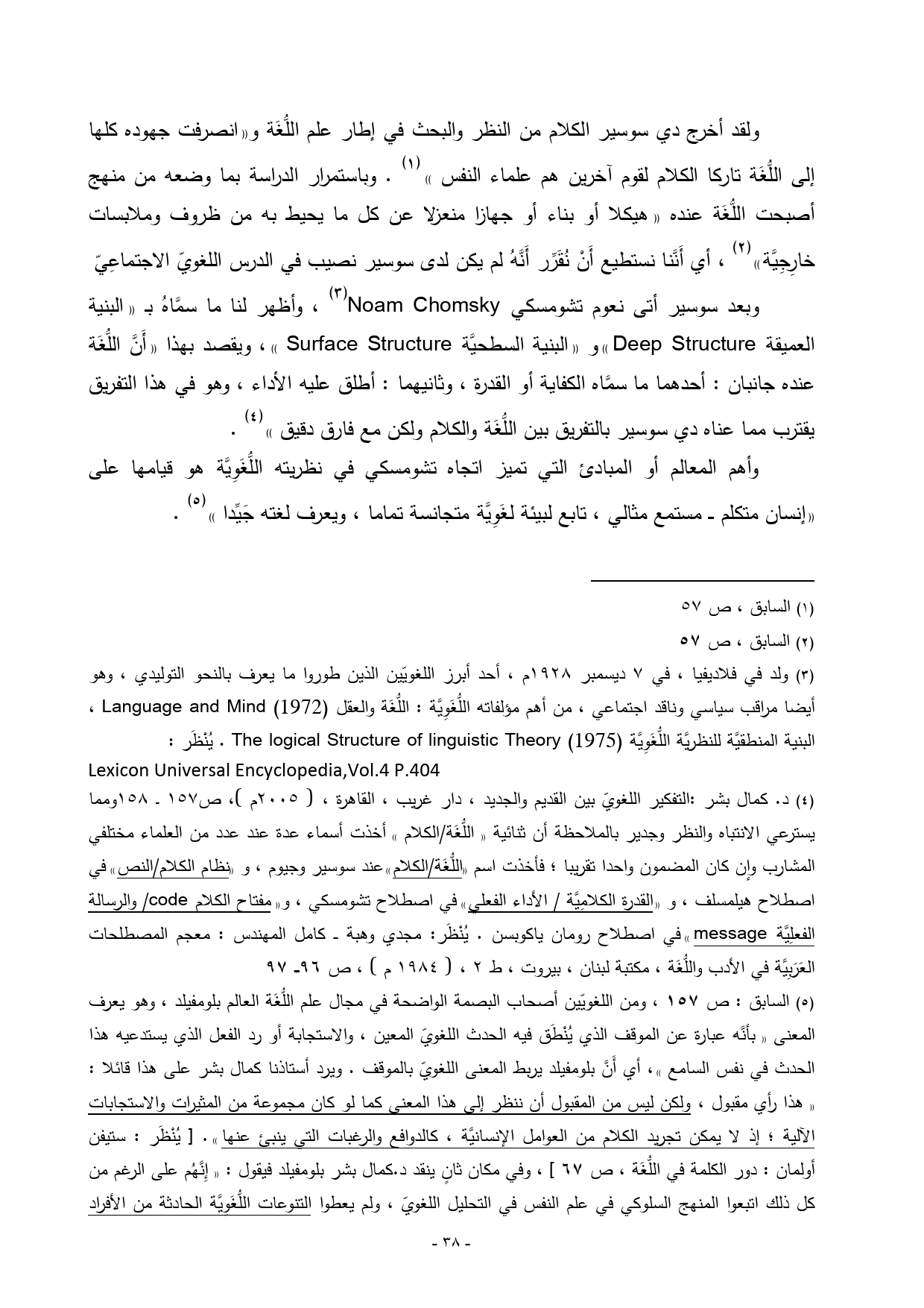 وبعد سوسير أتى نعوم تشومسكي Noam Chomsky (¬3)،