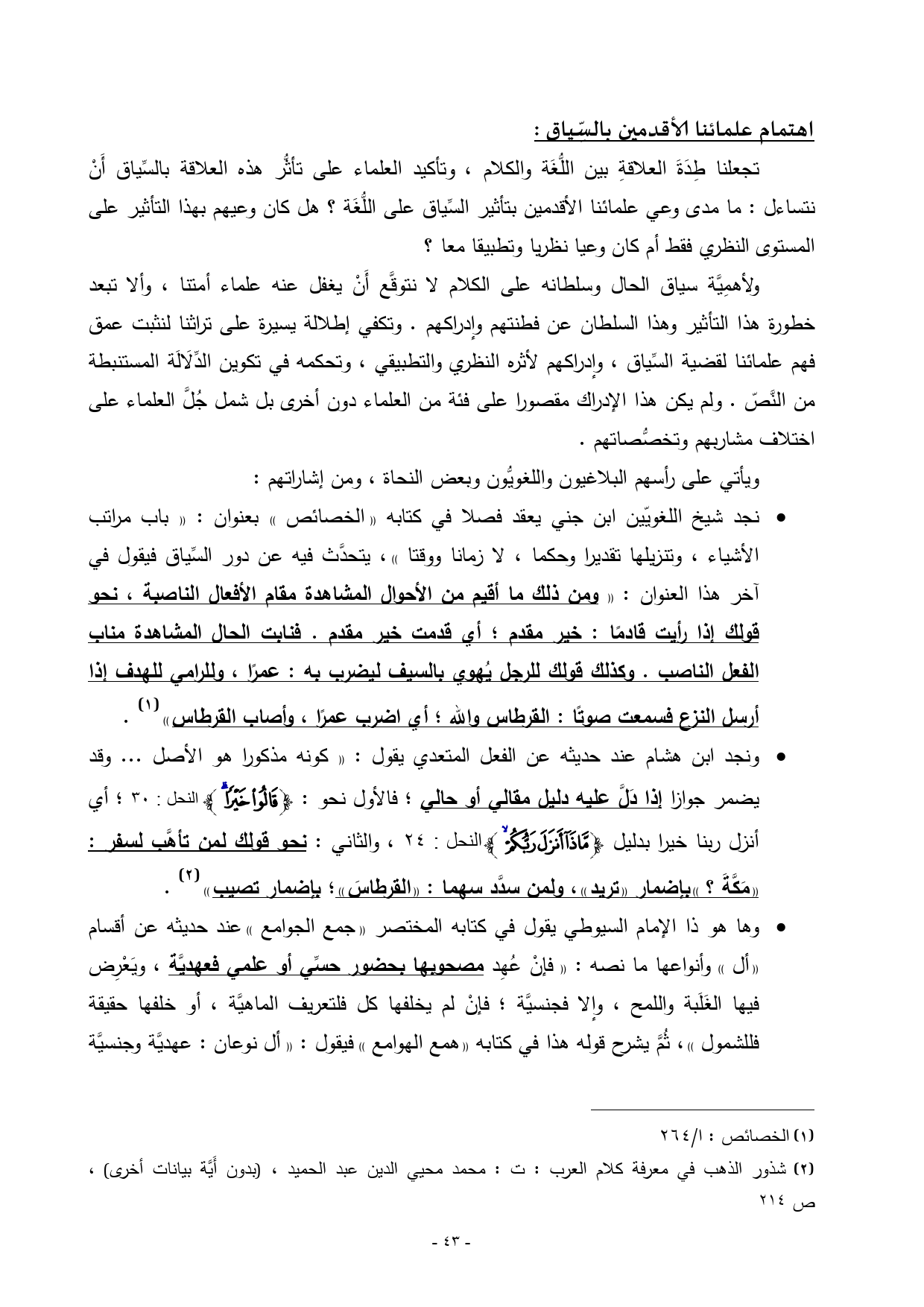 اهتمام علمائنا الأقدمين بالسِّياق: