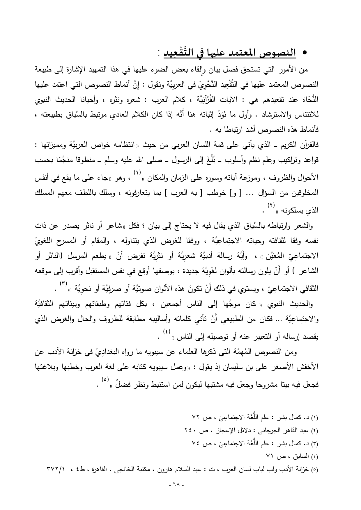 (¬1) د. كمال بشر: علم اللُّغَة الاجتماعِيّ، ص 72