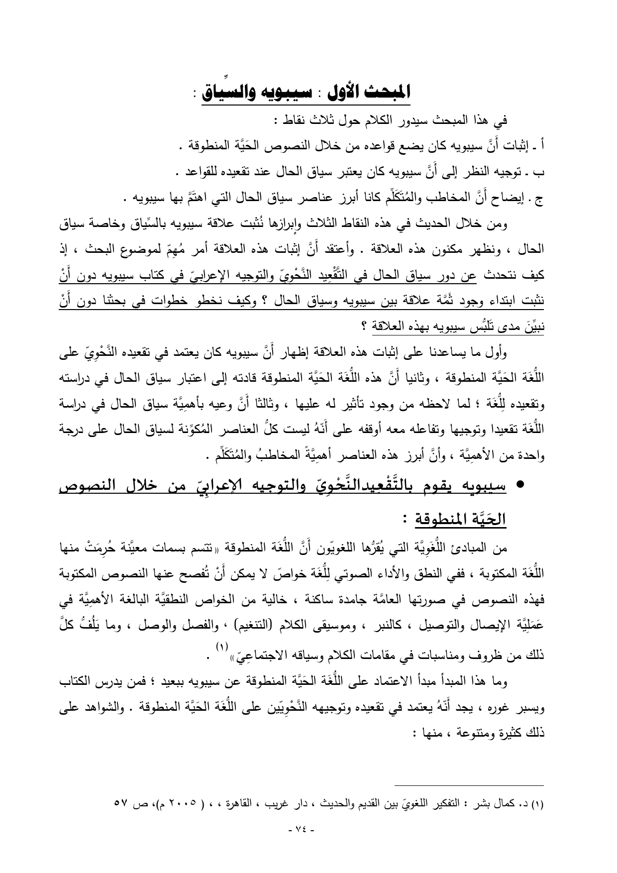(¬1) د. كمال بشر: التفكير اللغويّ بين القديم والحديث، دار غريب، القاهرة، ، ) 2005 م (، ص 57