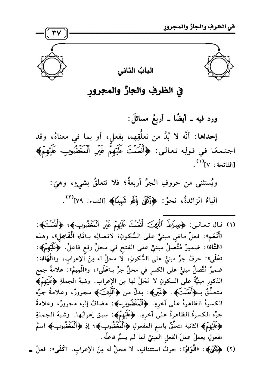 البابُ الثاني: في الظرفِ والجارِّ والمجرورِ