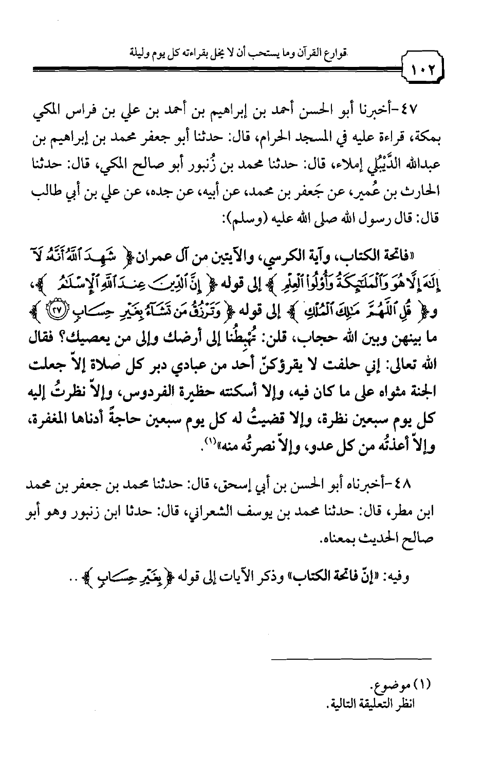 كتاب قوارع القرآن وما يستحب أن لا يخل بقراءته كل يوم وليلة للجوري