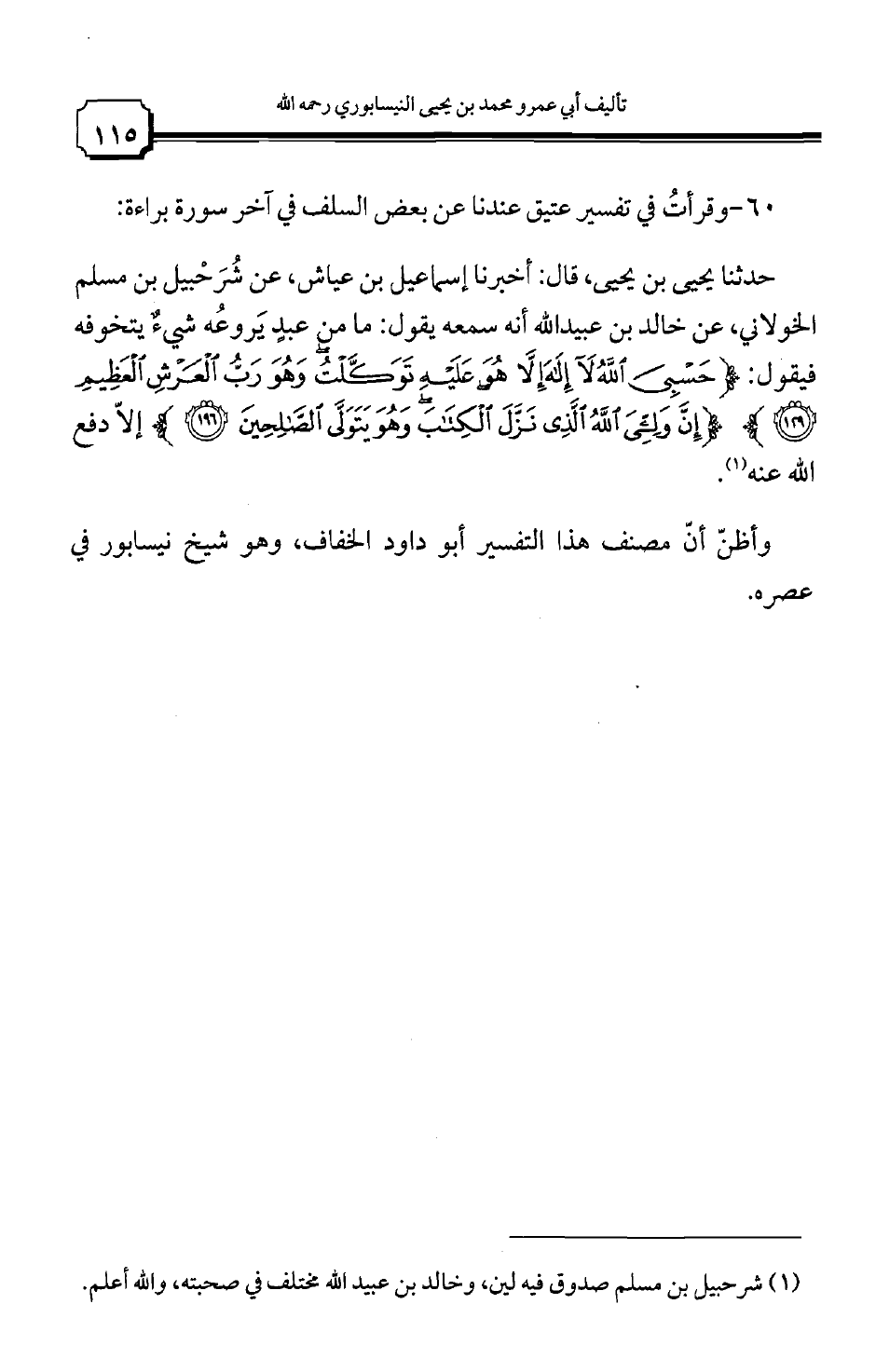 60 - وقرأت في تفسير عتيق عندنا عن بعض السلف في آخر سورة براءة: